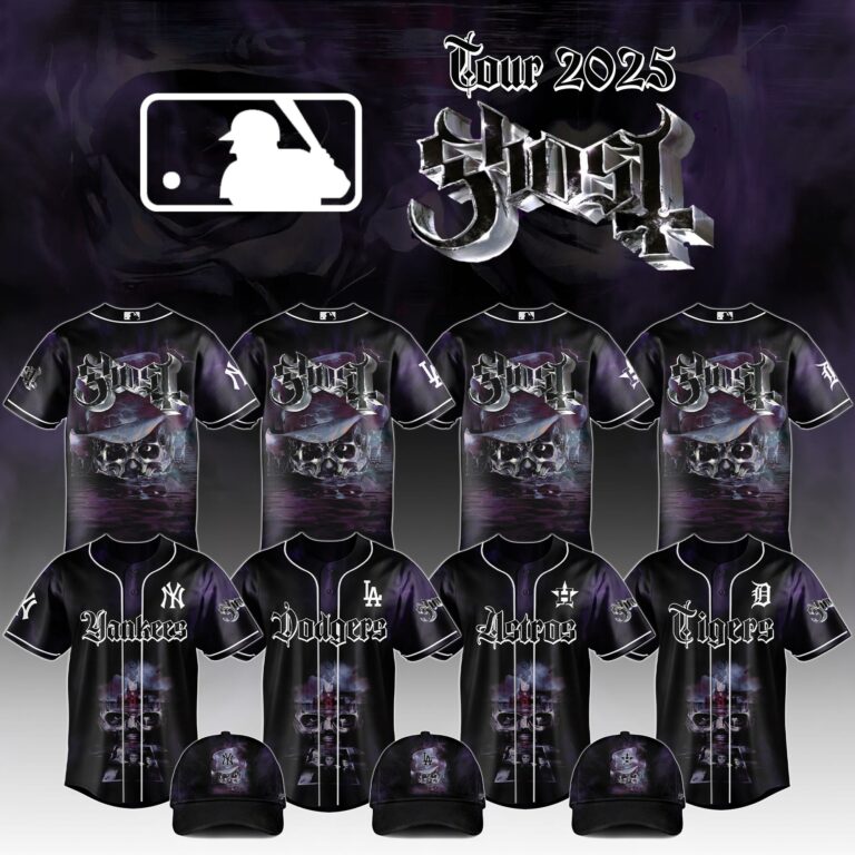 In a surprising mash‑up of metal music and sports fashion, the MLB × Ghost Skeletour World Tour 2025 Jersey makes waves among fans of both realms. Ghost, the Swedish occult-rock band fronted by Papa V, has been dazzling crowds across Europe, North America, and Mexico during their globe‑trotting Skeletour tour – named after their sixth studio album, Skeletá, which launched in April 2025. Now, fan‑made merch adds a sporty twist: a customizable baseball jersey and classic cap inspired by MLB aesthetics.