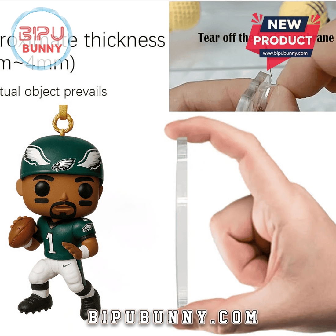 The 2025 Eagles LIX Super Bowl Advent Calendar is designed for fans who want to bring holiday cheer and team pride together in one collectible item. The box comes in a rich green background decorated with the Philadelphia Eagles logo, snowflakes, and a Christmas tree illustration that sets the seasonal mood. Inside, you will find a collection of miniature ornaments made from durable acrylic with a glossy finish, each measuring a few centimeters thick for long-lasting use. These ornaments include tiny player figures in detailed uniforms, the team mascot, stadium replicas, and small football-themed accents like helmets, jerseys, and championship symbols. Every item is carefully placed behind numbered compartments, allowing you to enjoy a new surprise each day leading up to Christmas. This advent calendar is not only visually fun but also practical, as the ornaments can be hung on a Christmas tree, displayed on a shelf, or even used as desk decorations for year-round team spirit.