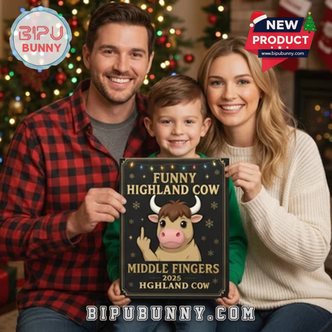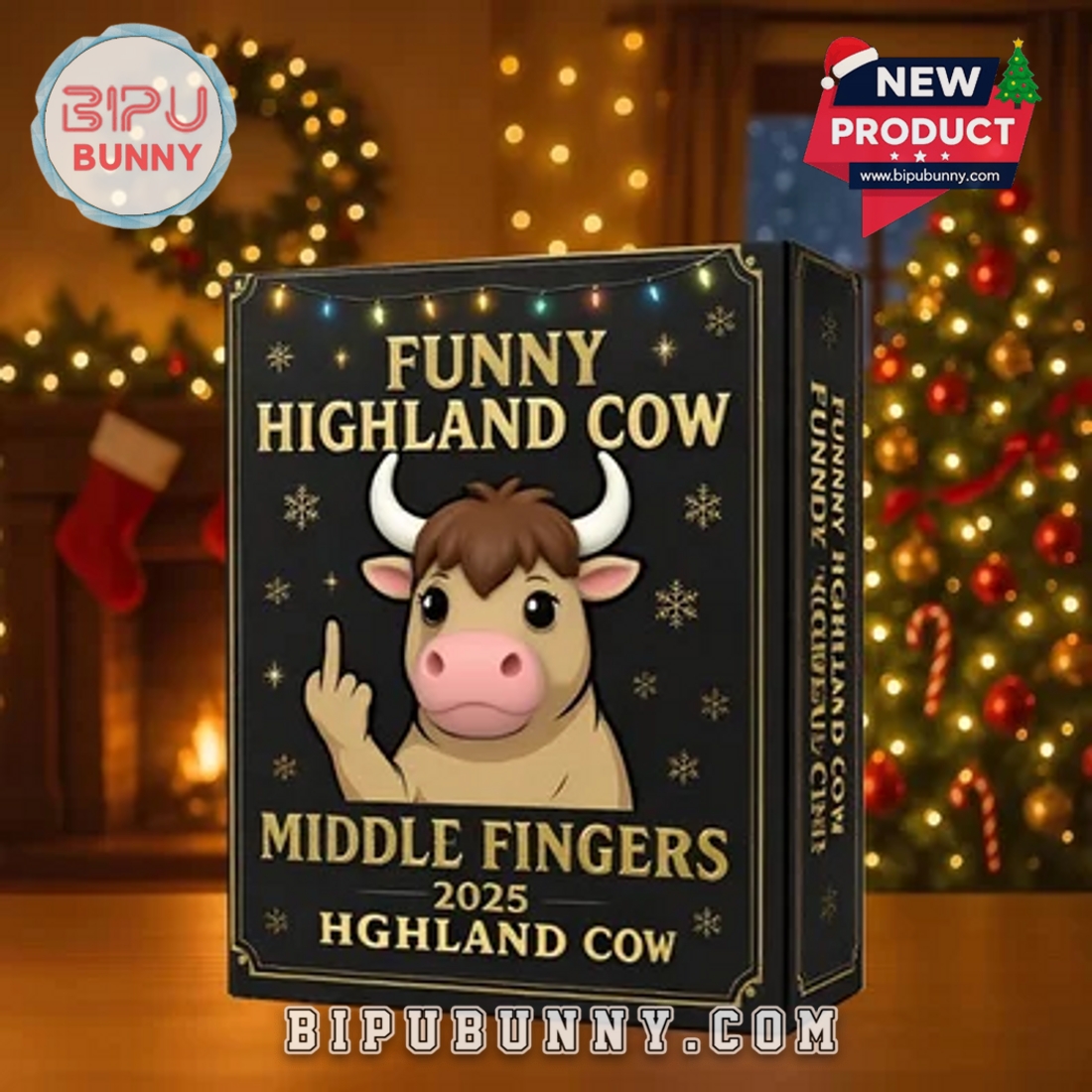 Looking for a Christmas countdown that’s equal parts adorable and hilarious? The 2025 Funny Highland Cow Advent Calendar is the ultimate holiday twist you didn’t know you needed! This cheerful box is matte black with gold snowflake accents and fairy light graphics dancing across the edges. Front and center is a cheeky cartoon Highland cow, bright-eyed with a soft pink snout—and yes, it’s giving the middle finger, because why not stir a little mischief into your festivities?