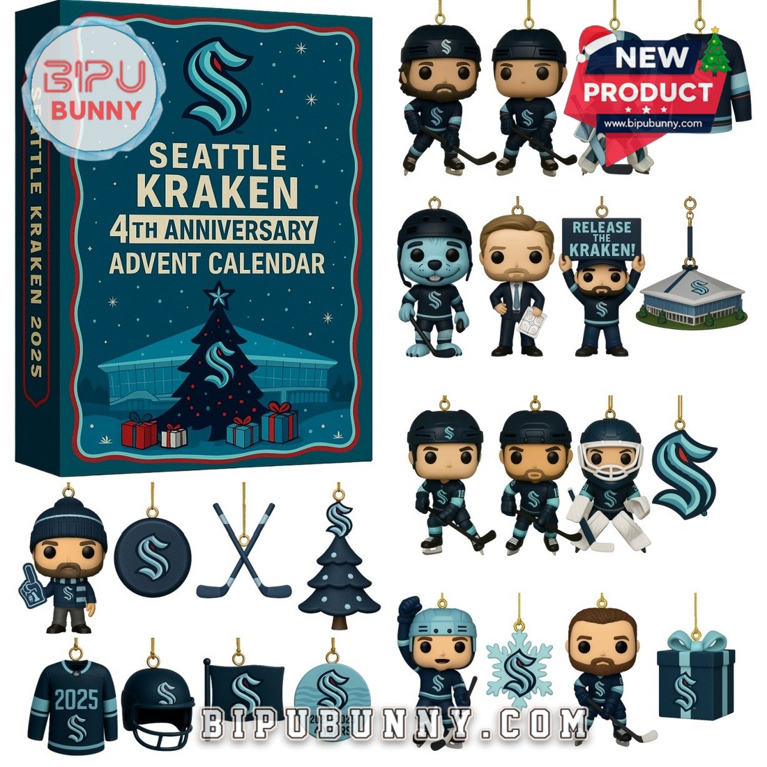 Shop high-quality 2025 Seattle Kraken 4th Anniversary Advent Calendar at Bipubunny and bring a daily dose of joy to the holiday season. Limited stock available – order now before they’re gone!