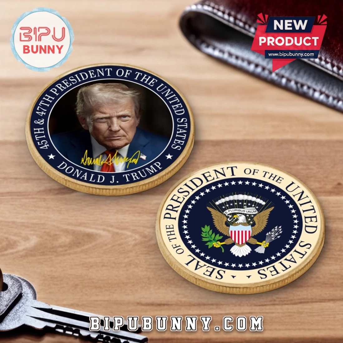 Shop high-quality 45 47 President Donald Trump Gold-Colored Coin at Bipubunny and enjoy exclusive deals on themed collectible coins that make great gifts or additions to any personal collection. Don’t miss out!