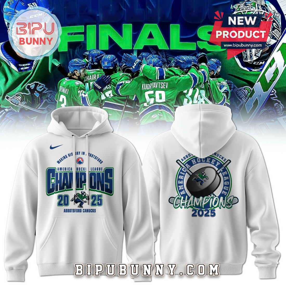 Abbotsford Canucks AHL Calder Cup Champions White Hoodie Information