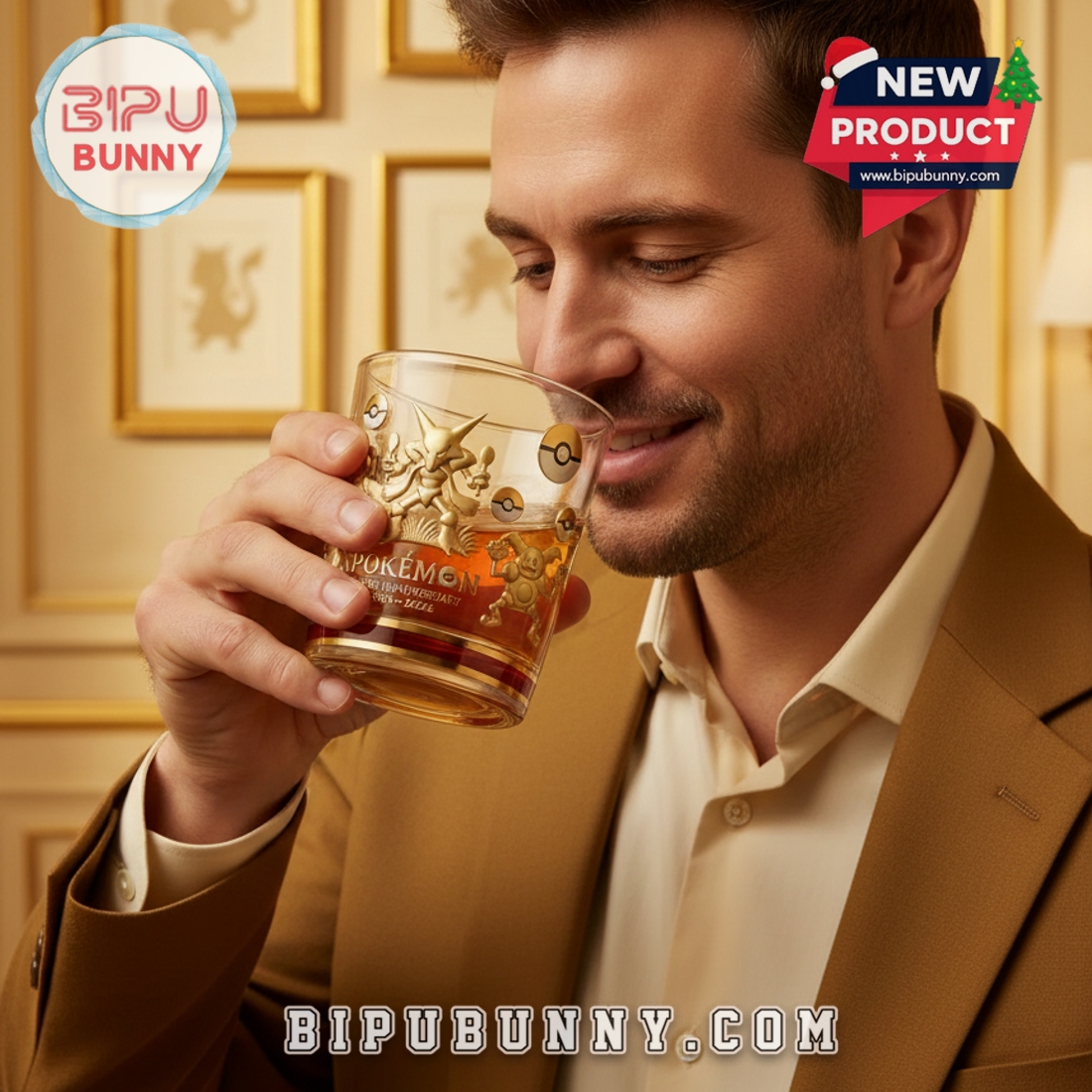 Each glass comes in a luxury gift box, colored in soft cream with gold silhouettes of classic Pokémon—ideal for displaying or gifting. The glass is made from high-density borosilicate, making it both durable and light in hand. It’s designed for whiskey but works just as beautifully with any drink, from cocktails to cold brews. Two distinct designs are available: one focused on psychic-type Pokémon with Alakazam as the centerpiece, and the other featuring a broader mix of iconic creatures for general fans. Both versions are timeless, adult-friendly, and unmistakably premium.