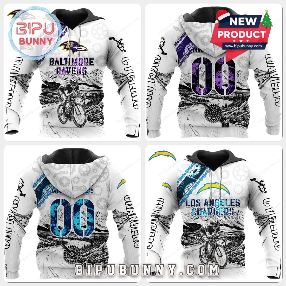 Each team version brings its own color stripe pattern on the chest and hood—purple for the Ravens, royal blue for the Rams, burnt orange for the Bears, and so on—so you get something that feels truly tied to your team. Whether you’re into cycling or just want a standout hoodie that combines sports and motion, this collection delivers.