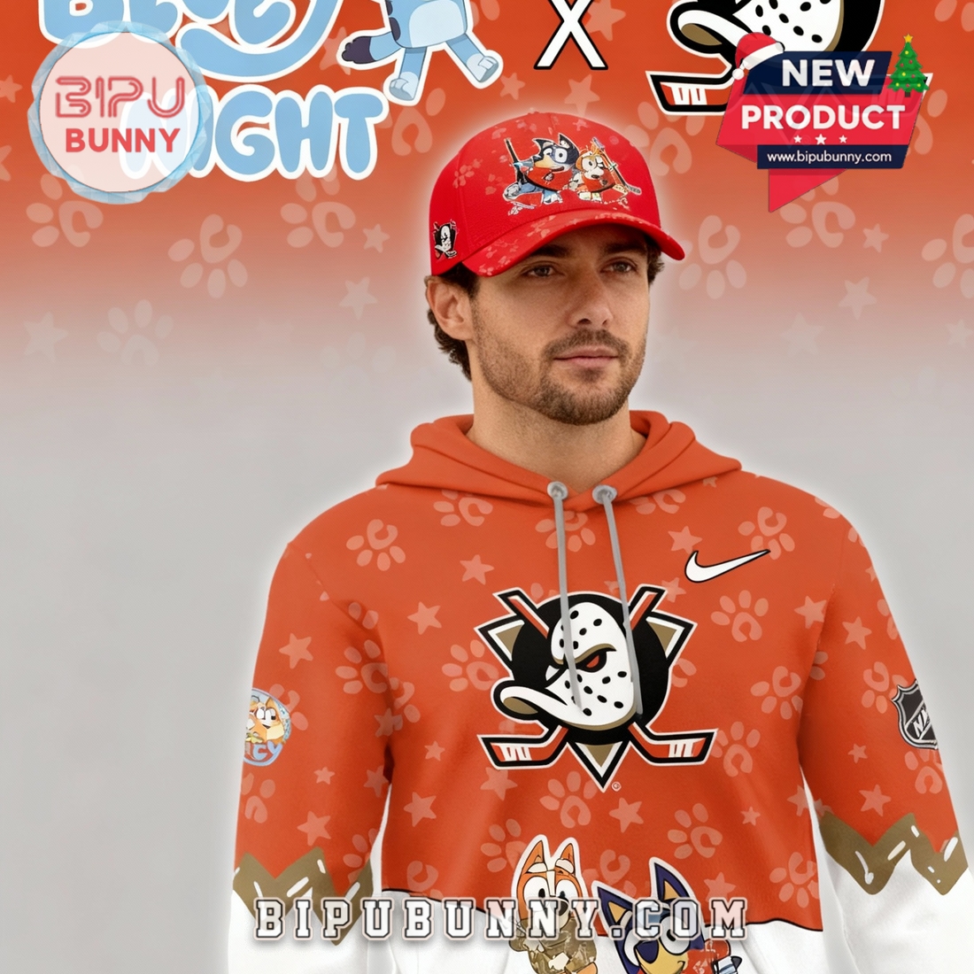 It’s a great match with dark joggers, denim, or even hockey leggings for a themed outfit. If you’re getting the hoodie, consider adding the matching Bluey-themed cap for a complete look—that combo really brings the fun to family events, school spirit days, or a Ducks home game.