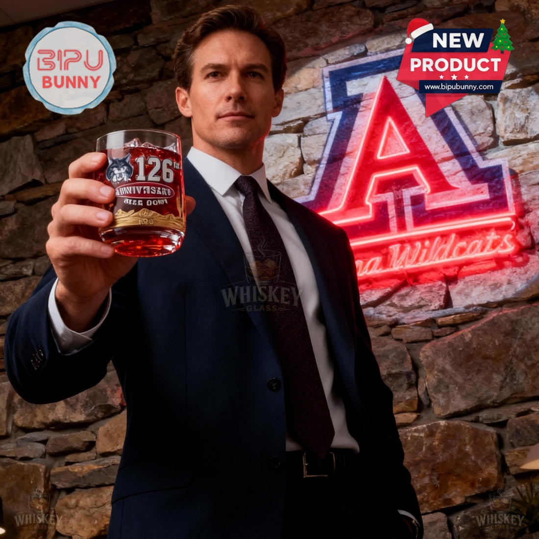 This anniversary whiskey glass is a great fit for Arizona Wildcats fans alumni and collectors who value items that carry both function and story. It suits game day use at home casual gatherings or display on a shelf or bar cart. Holding the glass brings a sense of connection to school history and shared memories built over generations.