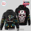 The Atlanta Falcons NFL Dia de los Muertos Limited Editions Hoodie presents an extraordinary fusion of passionate team loyalty and vibrant cultural artistry, setting it apart as a truly distinctive piece of fan apparel. This isn’t merely a piece of sportswear; it’s a wearable canvas, meticulously designed to honor both the revered Falcons franchise and the rich, symbolic traditions of Dia de los Muertos. The central motif immediately captures attention: a dramatically stylized sugar skull, rendered with an intricate beauty that is both respectful and powerful. Within its ornate contours, elements unmistakably representing the Atlanta Falcons are artfully integrated – perhaps a subtle wing detail forming part of the skull’s elaborate facial structure, or a familiar ‘ATL’ or Falcons helmet silhouette subtly woven into the surrounding floral and geometric patterns. The color palette skillfully balances the Falcons’ classic black, red, and white with the festive, often jewel-toned hues characteristic of Dia de los Muertos, such as deep marigold oranges, brilliant fuchsias, and vibrant turquoises, all contributing to an eye-catching contrast against a predominant dark background, likely a sophisticated charcoal or classic black. Intricate embellishments, reminiscent of traditional papel picado, candles, or blooming cempasúchil flowers, may extend across the garment, adorning sleeves, the back, and even subtly lining the hood, ensuring that the visual narrative of remembrance and celebration is consistent and deeply engaging from every angle. The ‘Limited Editions’ designation adds a significant layer of exclusivity, transforming it from a mere clothing item into a sought-after collectible for the truly dedicated fan or art enthusiast.
