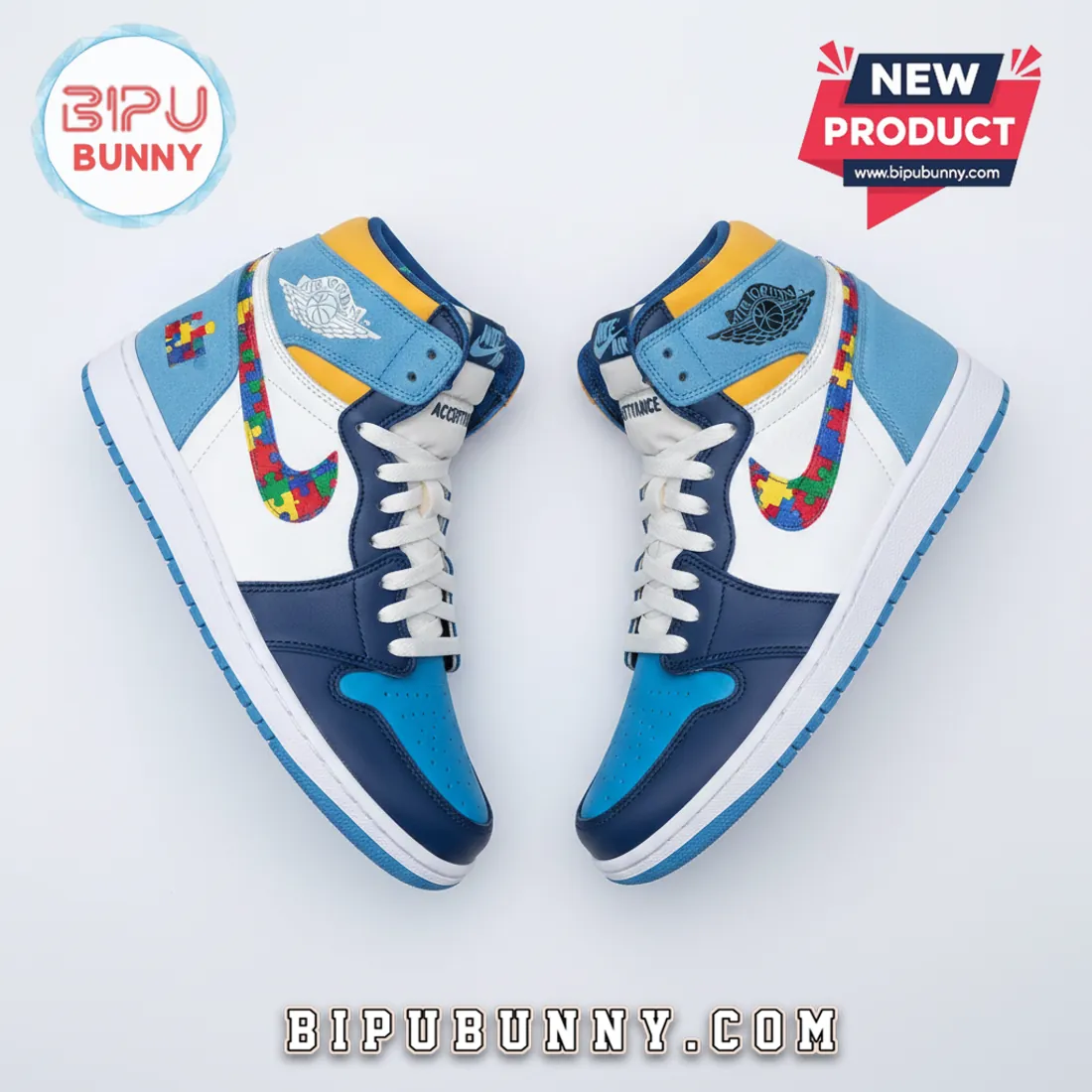 Shop high-quality Autism Awareness Puzzle Piece Air Jordan 1 High-Top Sneakers today at Bipubunny and enjoy exclusive discounts. Choose your perfect size, explore the full photo gallery, and step out in comfort and classic AJ1 style!
