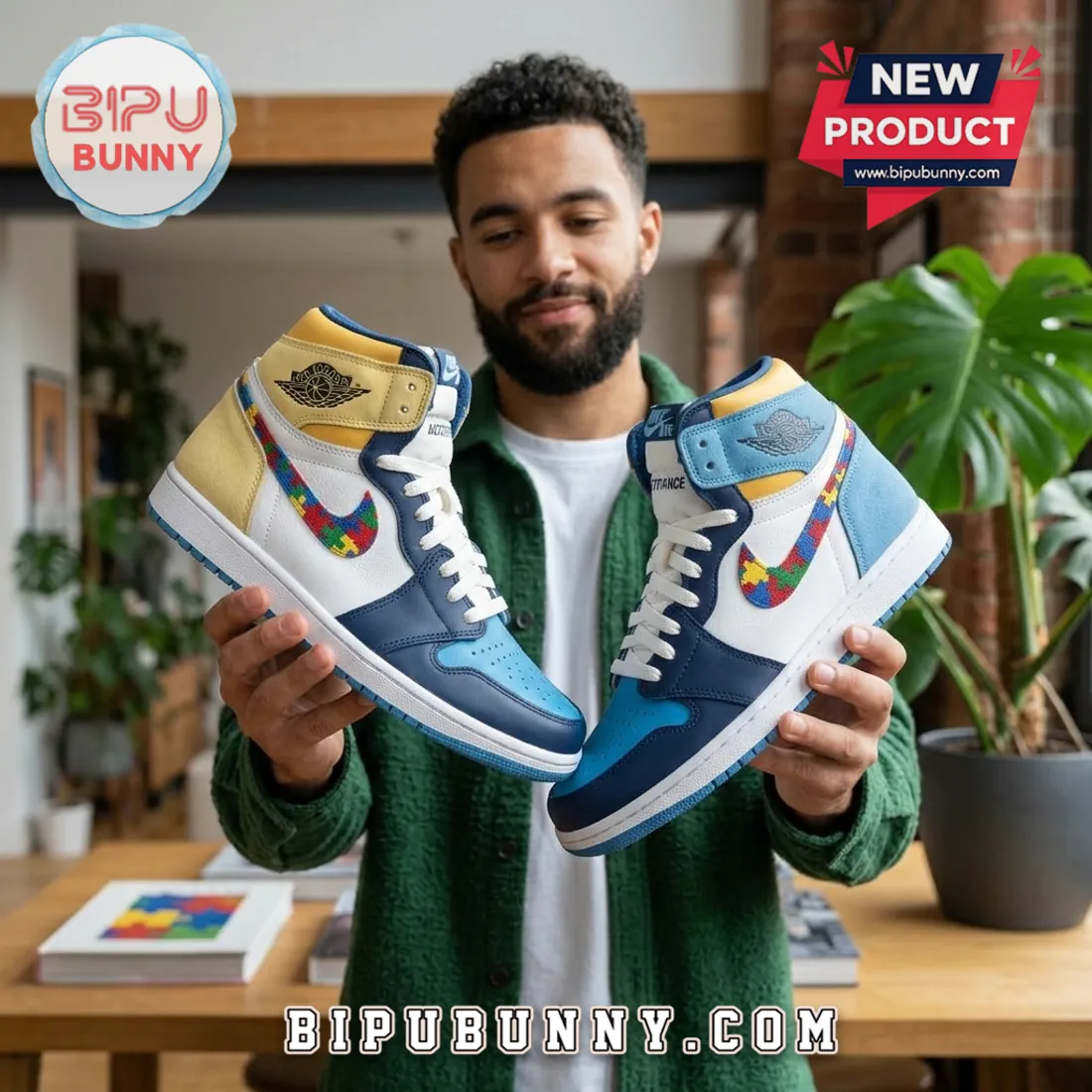 The Autism Awareness Puzzle Piece Air Jordan 1 High-Top Sneakers stand for those who never quit, who stand firm for what matters, always. This is for the loyalists.