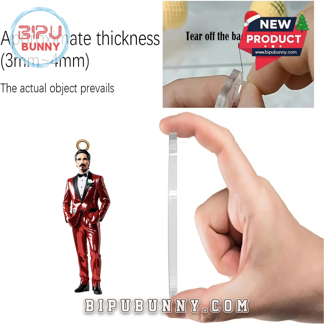 Inside the box are 24 individual slots, each hiding a surprise inspired by one of the most iconic boy bands of all time. You’ll find mini acrylic ornaments featuring the band members in holiday suits, classic Backstreet Boys album poses, festive baubles with printed logos or lyrics, and scene-style figurines showing the group around Christmas trees, gifts, and snowy stages. Each ornament is made from high-gloss resin or clear acrylic, measuring about 3mm to 4mm thick, and protected with a peel-off film to keep the finish shiny. Many are designed to hang on a tree with built-in loops, while others can be used as free-standing displays.