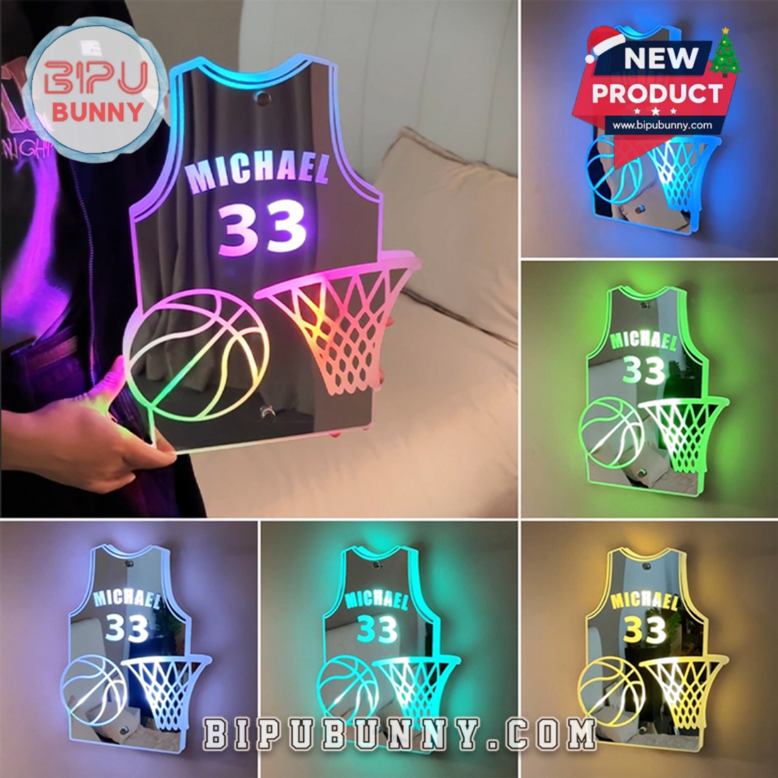 Shop high-quality Basketball Jersey Mirror Lamp Cool Gift For Basketball Lovers at Bipubunny and enjoy exclusive discounts on personalized night lights. A unique gift perfect for any young person’s bedroom, offering a stylish and memorable touch.