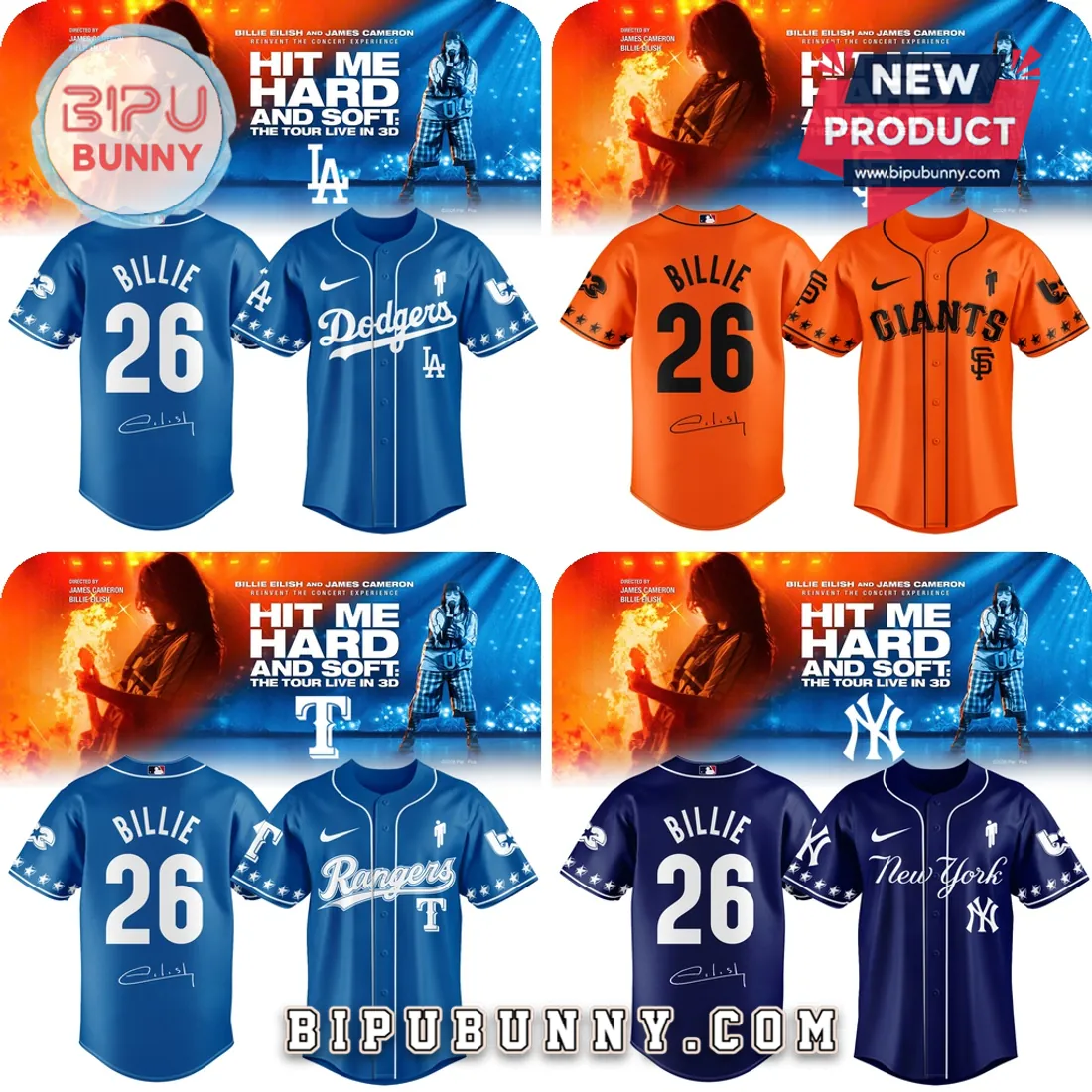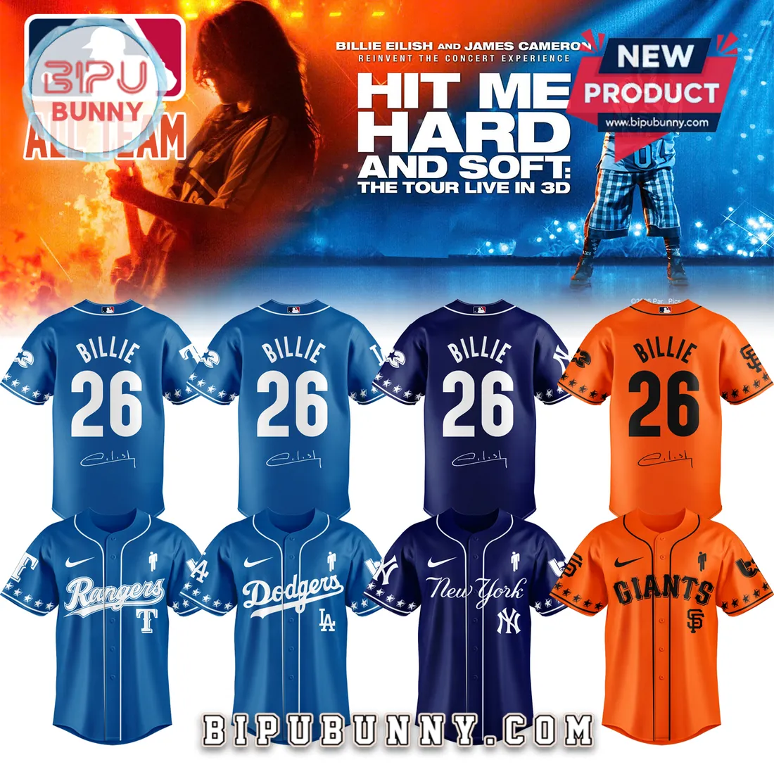 The Billie Eilish x MLB All Team Hit Me Hard & Soft Tour Baseball Jersey declares your allegiance. For the true fans who stand firm, no matter the score or the season.