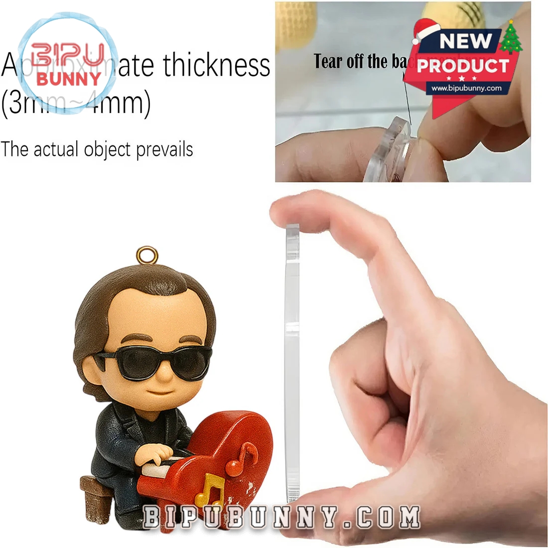 Inside, you’ll find 24 mini compartments, each revealing a new surprise: from adorable chibi-style Billy Joel figures in iconic outfits (including a Santa suit!) to tiny musical instruments like a black grand piano, harmonica, microphone, and gold vinyl record. Each piece is made from durable acrylic or molded resin, giving it a solid feel with fine detail, right down to the musical notes painted on tiny props or the miniature snowflakes on the accessories. These aren’t generic toys—every detail, from the character’s signature sunglasses to the red piano with embossed notes, reflects a moment or era in Billy Joel’s career.