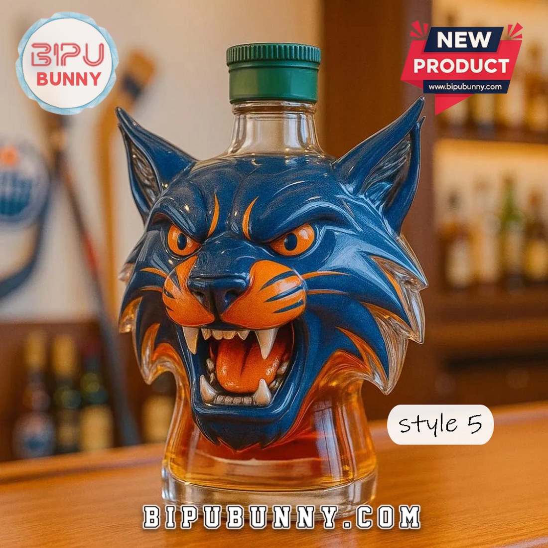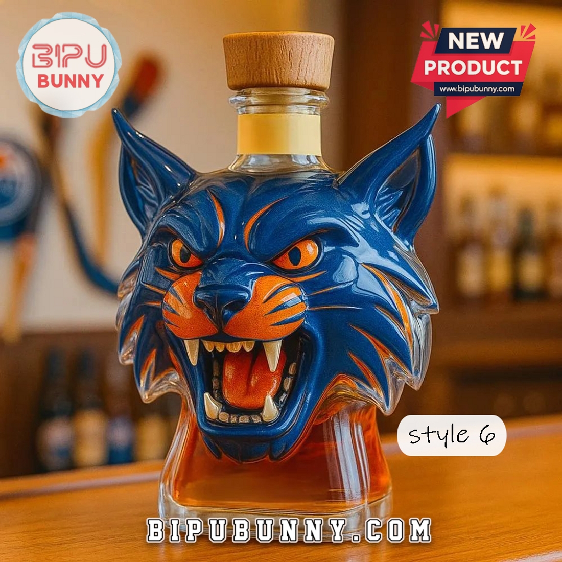 Don’t miss out on this chance to own a masterpiece that blends functionality with art. Whether you’re treating yourself or gifting a loved one, the Blue & Orange Lynx Head Whiskey Bottle is a choice you won’t regret. Order now and elevate your whiskey experience, or explore more unique items at BipuBunny for even more stunning designs!