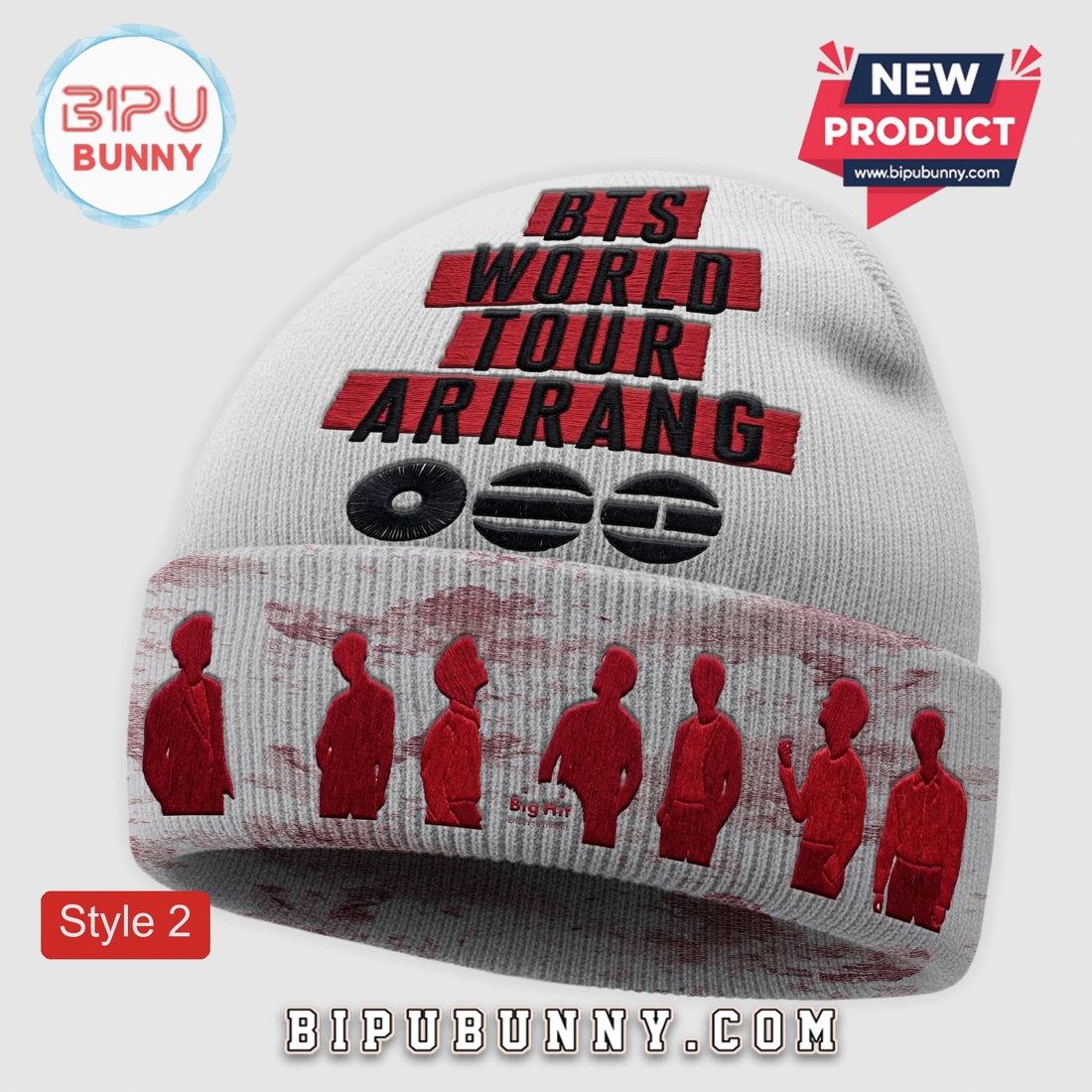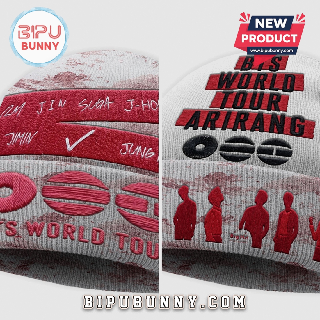 Get your BTS World Tour Arirang Beanie Hat today and stay cozy in style all season long.