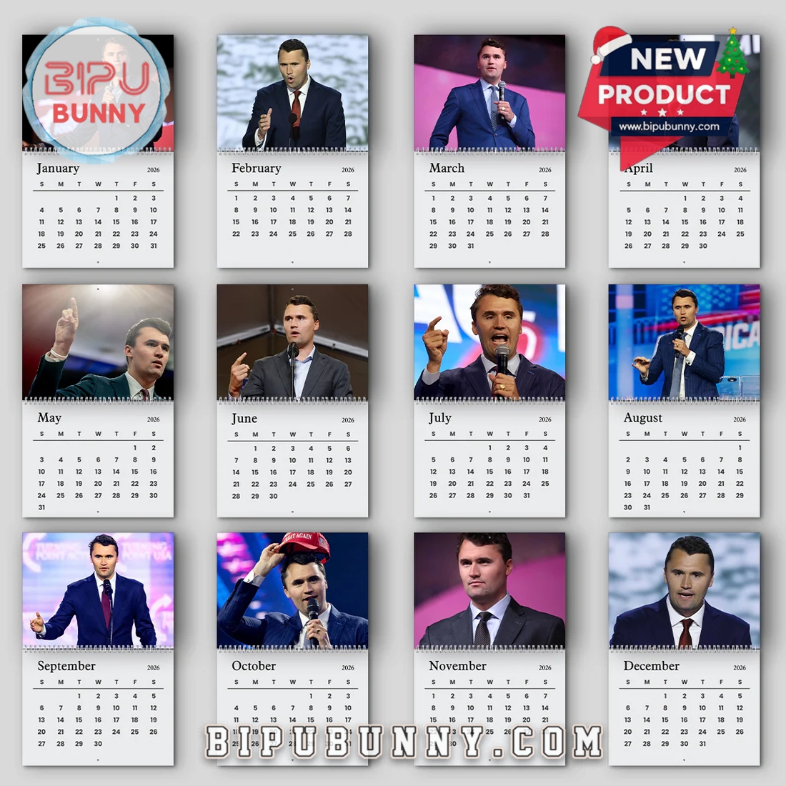 - Bold Photography: Each month features a high-resolution, full-color photograph of Charlie Kirk in action, capturing distinct moments of passion and influence.