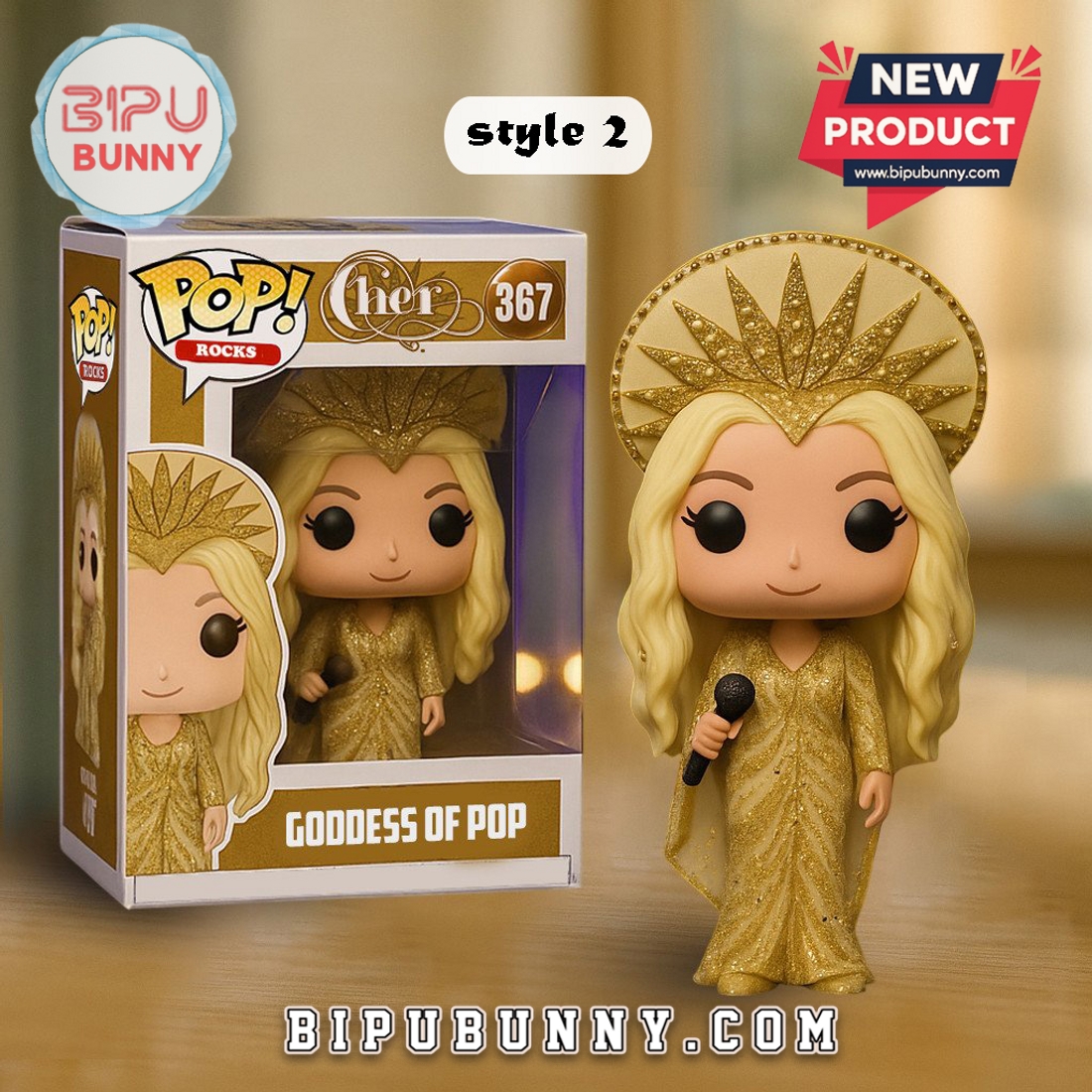 Cher Funko Vinyl Collectible Figure brings the style and legacy of the music icon straight to your shelf. Made from high-quality vinyl, these figures stand out with precise sculpting and a smooth matte finish that captures the essence of Cher’s most famous looks. There are two distinct styles available. The first features Cher with a sleek black bob and a shimmering nude-colored gown crossed in front with gold accents. Her pose is confident, hands on hips, evoking her powerful stage presence. The second style showcases Cher in a gold glittering gown with flowing blonde hair, holding a microphone, and wearing a stunning sunburst crown. Both versions include finely painted eyes, expressive brows, and detailed outfits with textures that catch the light beautifully. These figures come in themed packaging that reflects the character design and makes them great for display in or out of the box. Perfect for shelves, desks, or music corners, they add charm and conversation wherever they stand.