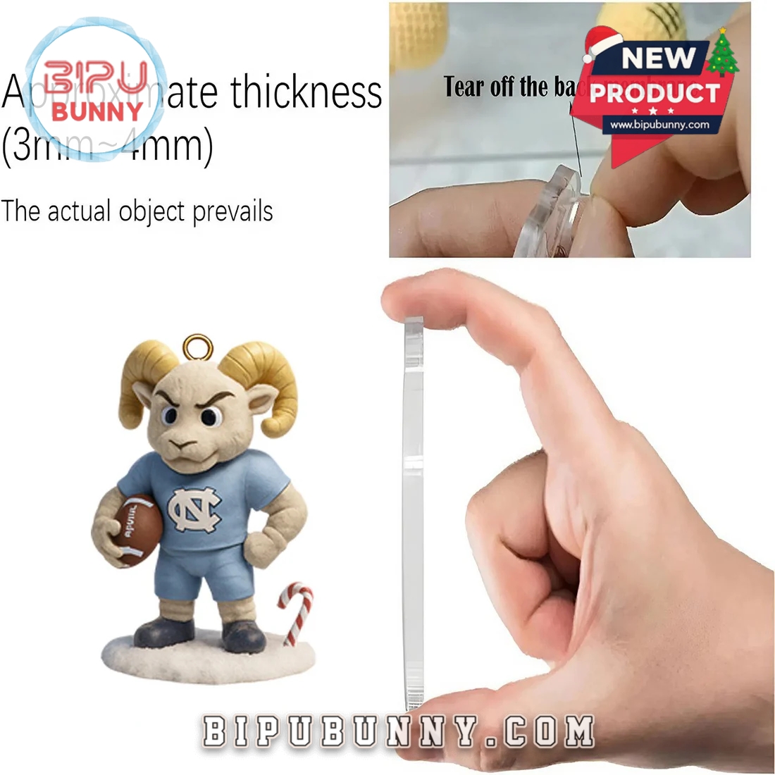The box contains 24 festive compartments, each hiding a Tar Heels-themed ornament or mini collectible. Every piece is made of clear acrylic, about 3mm to 4mm thick, which gives them a sturdy, polished look without adding weight. The ornaments feature a variety of styles—from chibi-style football players and the university’s ram mascot, to small props like helmets, jerseys, scarves, gloves, lockers, landmarks, and even a miniature Kenan Memorial Stadium. Each ornament includes a built-in loop for easy hanging on your tree, wreath, or anywhere you like.