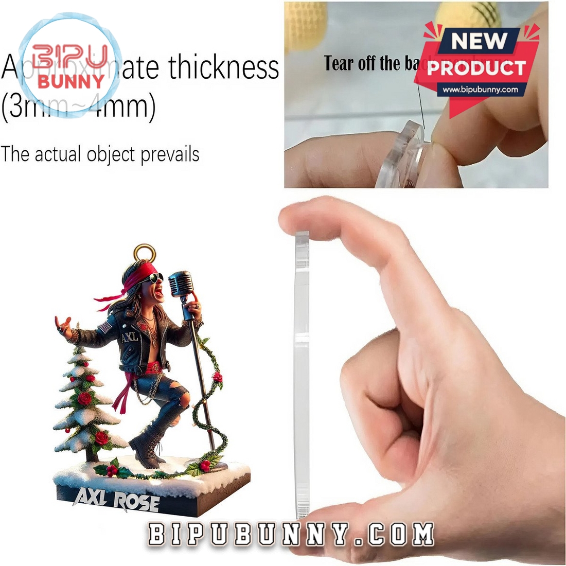 Inside, you’ll find 24 acrylic ornaments, each between 3mm–4mm thick, printed in sharp, bold color on durable clear plates. Every piece is a mini collectible: Axl Rose mid-performance, Slash with his top hat and Les Paul, band emblems, leather jackets, drum kits, and even cheeky Christmas touches like a skull in a Santa hat. The ornaments come with hanging loops, ready to rock your tree or your display shelf. Some designs pop with 3D depth, others are flat with glittering finishes—either way, they’re made to last and built to be seen. Every day in December becomes a stage reveal.