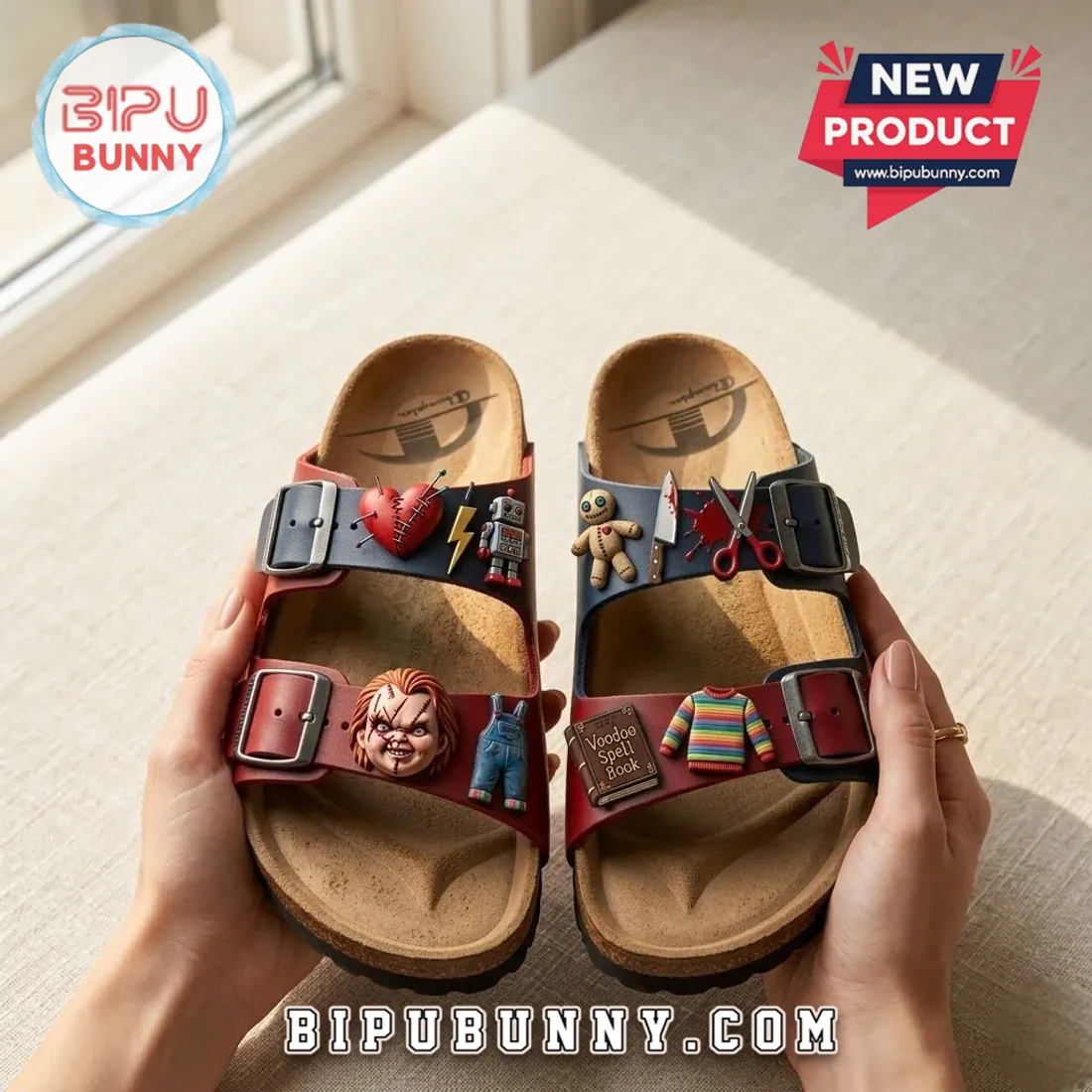 - Loud And Proud: Declare your allegiance without apology. These Chucky sandals ensure your true colors are always on display, a bold statement for all to see.