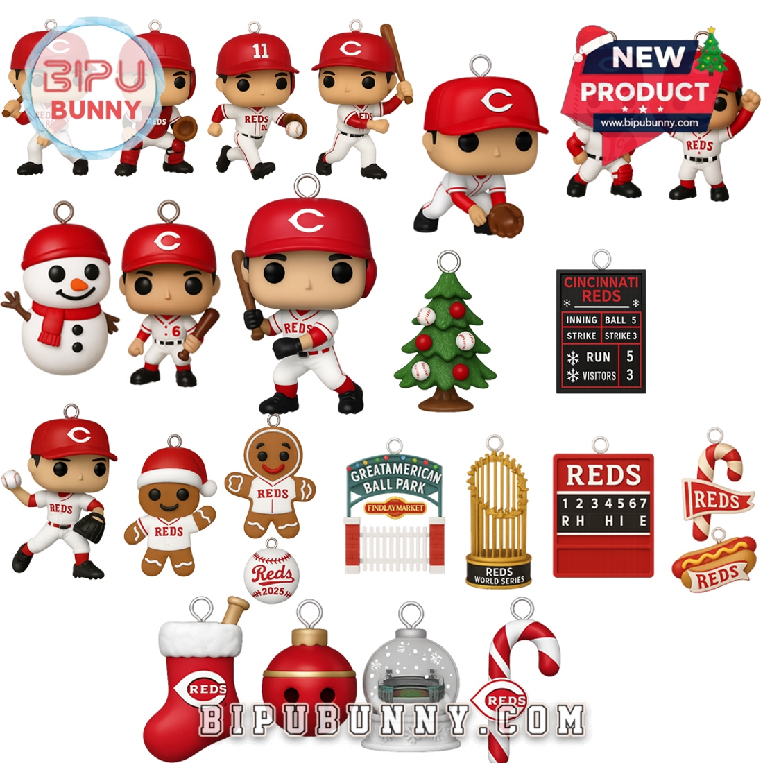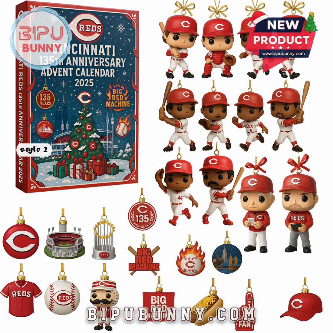 The calendar comes in several unique styles, each celebrating a different aspect of the Reds’ legacy. Style 1 features players dressed in traditional uniforms, with accessories like team helmets, baseball bats, and festive Reds ornaments. Style 2 adds more team-focused items like the iconic Reds logo and commemorative pieces celebrating the team’s achievements, while Style 3 includes fun items such as Reds mascots, snowmen, and holiday-themed baseball accessories. With every surprise behind each door, fans get a new piece of the team’s history and a daily dose of excitement leading up to Christmas.