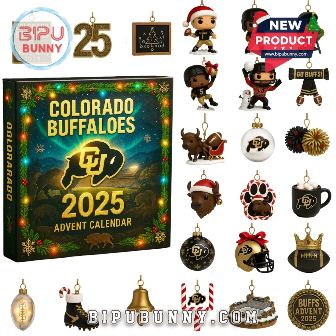 Don’t miss your chance to snag this holiday touchdown! The Colorado Buffaloes Advent Calendar 2025 is a premium new product from Bipu Bunny, guaranteeing a fun, spirited countdown! Order yours today and make your holiday season a true Black and Gold affair! Go Buffs!