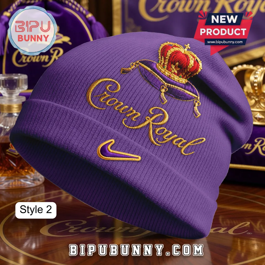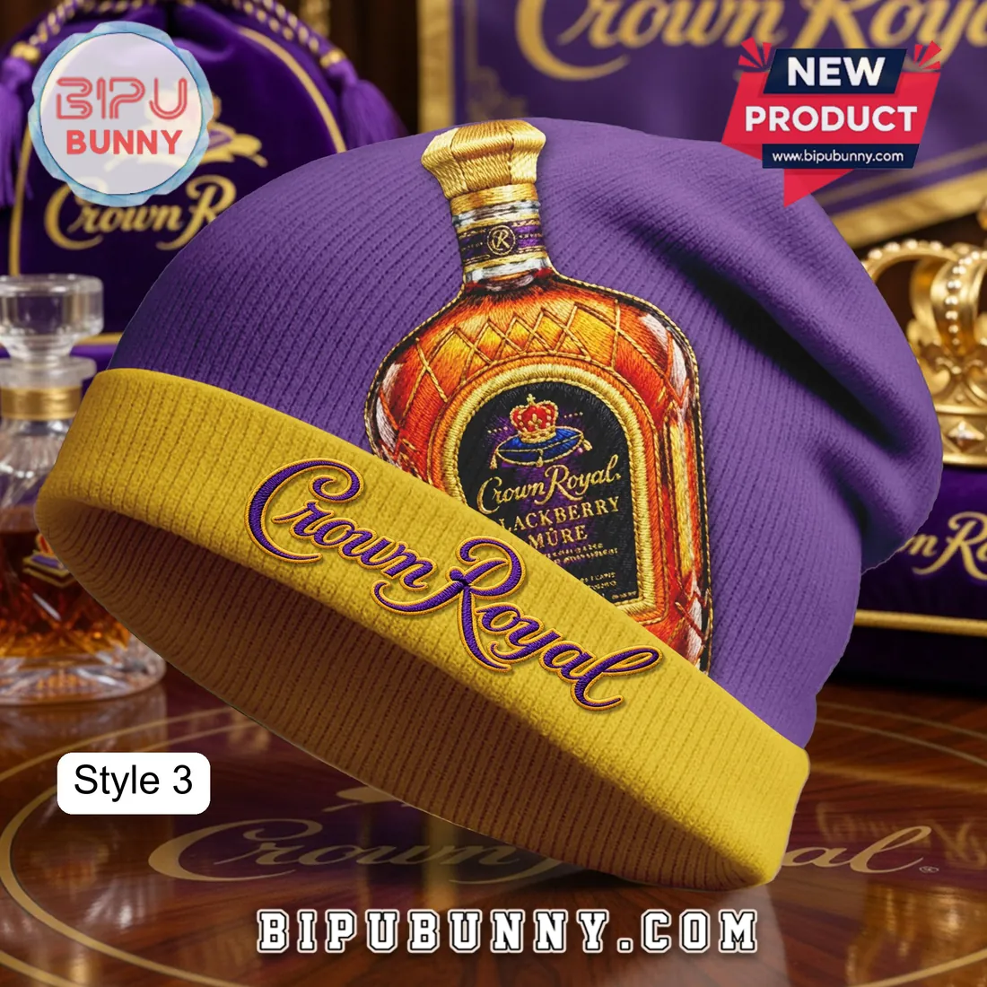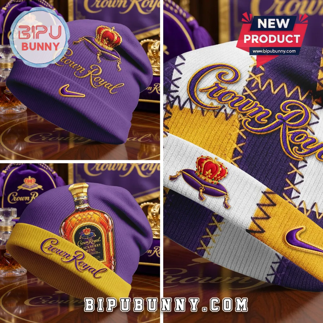 Get your Crown Royal Patchwork Purple And Gold Whiskey Winter Beanie Hat today and stay cozy in style all season long.