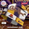The ‘Crown Royal’ script, rendered in a striking gold, carries a powerful visual presence, its elegant curves contrasting with the overall aggressive detail. Paired with the iconic crown emblem and the prominent Nike swoosh, the typography forms a bold, unmistakable brand statement.