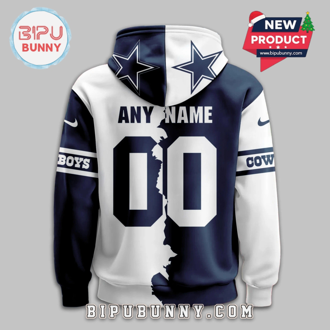 The most striking characteristic of this hoodie is its innovative “Victory Split” design, a visually dynamic presentation that breaks from traditional team aesthetics. Imagine a sharply defined vertical seam running down the center, expertly dividing the hoodie into two distinct, yet complementary, color blocks. One side is rendered in the classic deep Dallas Cowboys navy, while the other proudly showcases a gleaming silver, creating an immediate and unmistakable visual impact. This isn’t merely a color division; the iconic Dallas Cowboys star, often emblazoned centrally, is ingeniously split across this very seam, with half residing on the navy and half on the silver. This clever detail symbolizes unity in division and the coming together of team strength. Below this striking star, or perhaps subtly integrated into one of the panels, the “2025 Victory” motif is prominently featured. This isn’t just a generic year; it’s a specific, aspirational declaration, often rendered in a bold, metallic-effect font that catches the light, signifying future triumph and the championship spirit fans eagerly await. Smaller Cowboys wordmarks or conference logos might also be strategically placed on a sleeve or hood, adding authenticity without cluttering the primary split design.