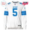 Indulge in the electrifying aura of the David Montgomery Detroit Lions Edition Hoodie Jersey, a sartorial masterpiece meticulously crafted for the discerning football aficionado. This isn’t merely apparel; it’s a statement, a bold proclamation of allegiance to the roaring pride of Detroit. Adorn yourself in the vibrant hues and iconic insignia, a testament to your unwavering devotion to the gridiron gladiators. This premium garment seamlessly blends comfort and style, offering a sophisticated silhouette that transcends the limitations of ordinary sportswear. The exquisite design, a harmonious fusion of contemporary aesthetics and classic football flair, ensures you’ll command attention wherever you tread. Feel the undeniable allure of this exceptional piece, expertly tailored to provide an unparalleled level of opulence and ease. More than just a jersey, it’s an embodiment of the electrifying energy and unwavering spirit of the Lions, a tangible connection to the heart-pounding action on the field. Own a piece of Lions history; procure this extraordinary hoodie jersey and elevate your game-day experience to unprecedented heights of refined fandom. Experience the unparalleled comfort and the distinguished look that elevates you beyond the typical spectator, showcasing your discerning taste and passionate support for your beloved team. This is not simply apparel; it is a declaration of unwavering loyalty and sophisticated style.