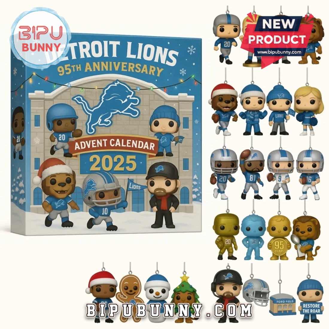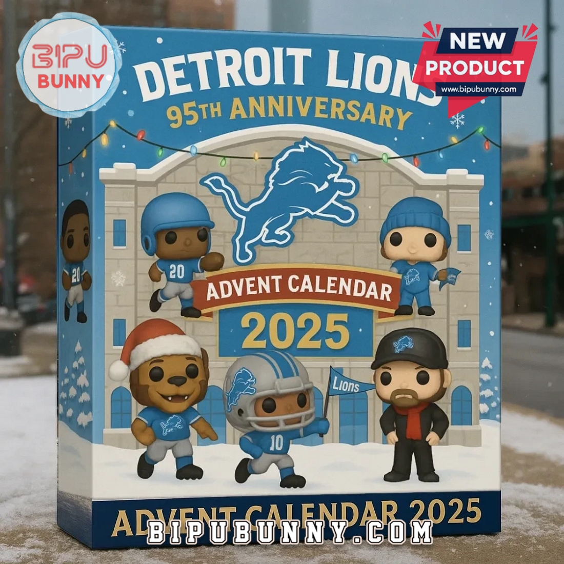 Order now from bipubunny.com and score a piece of Lions history. Only available for the 2025 season, this advent calendar marks a major milestone in the team’s legacy. Fun fact: The Detroit Lions have played on Thanksgiving Day since 1934 — so it’s only fitting that their anniversary calendar brings football fun to your entire holiday season!