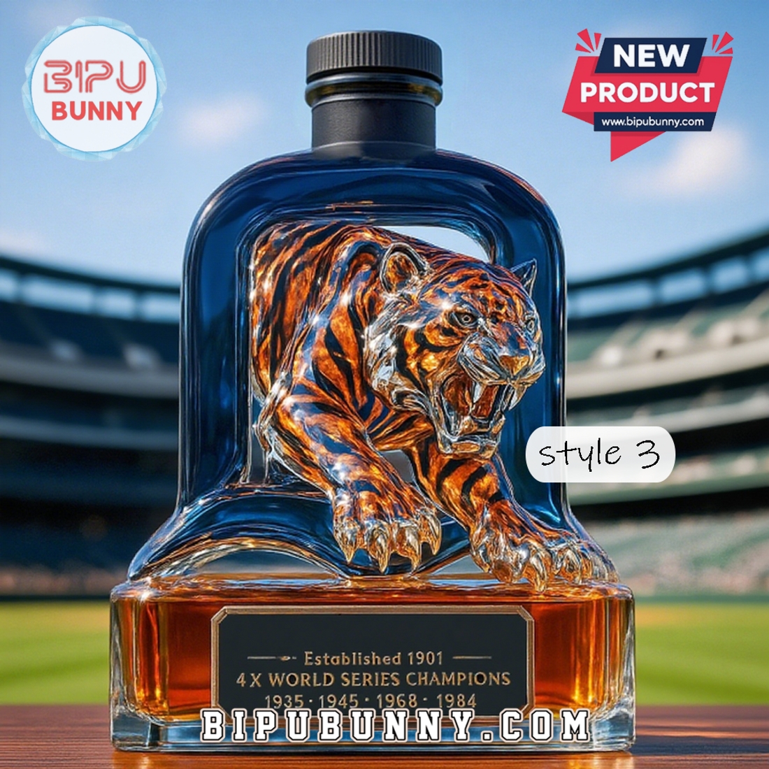 This whiskey bottle is for the true Detroit Tigers fan, the history buff, and anyone who appreciates a fine, commemorative piece! The feeling of holding this bottle is one of pride and connection to the team’s legacy. The detailed glass tiger sculpture is a major highlight, capturing the fierce spirit of the team. The four championship years are subtly included, a nod to the team’s greatest moments. The variety of cap designs allows for personalization, letting you choose the style that best fits your collection. You should choose this product because it is not just a bottle of whiskey! it is a tangible piece of Tigers history that you can display and share with others. To keep the bottle in perfect condition, store it out of direct sunlight to prevent the whiskey from fading. This bottle pairs wonderfully with a set of whiskey glasses or other Tigers memorabilia to create a complete fan collection. It is the ideal centerpiece for your next game-day party.