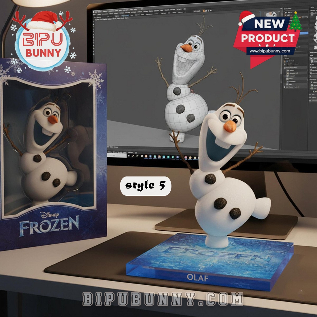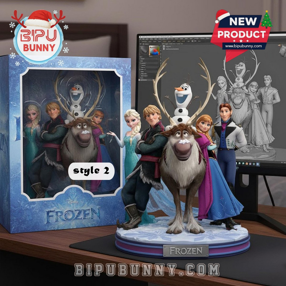 - Style 3 – Sven: Sven’s playful pose brings humor and charm. The base glows with a soft light effect that makes it a standout on darker shelves.