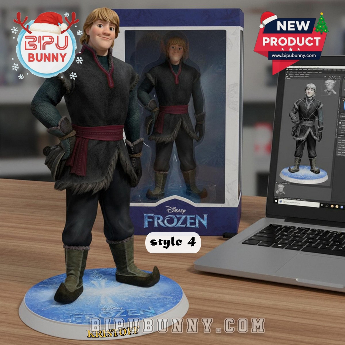 - Style 4 – Kristoff: Shows Kristoff in a bold, confident stance. His platform has a frost-textured base, adding dimension and traction.