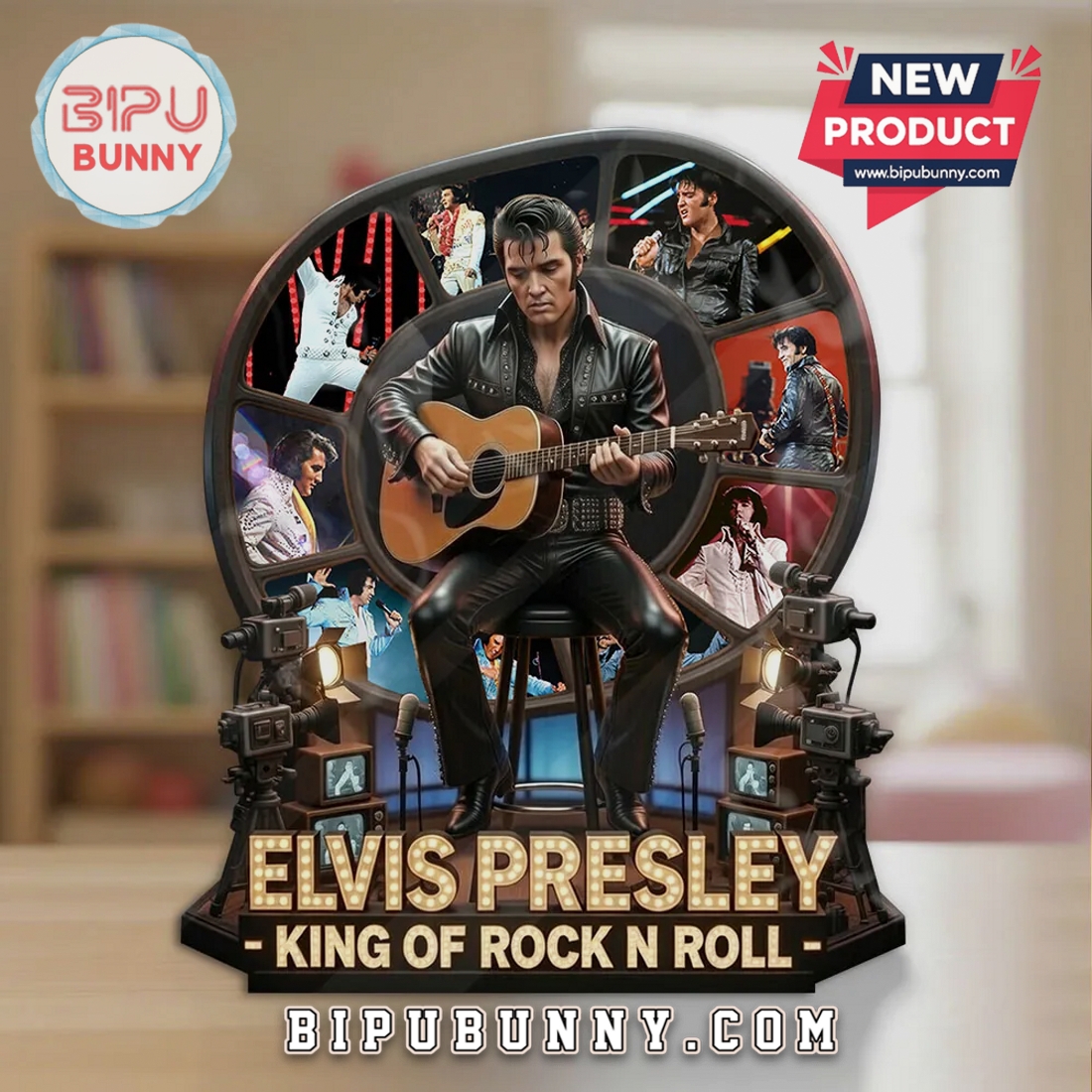 Own a piece of music history. This 3D acrylic plaque brings the King of Rock to life with stunning depth and vibrant detail.
