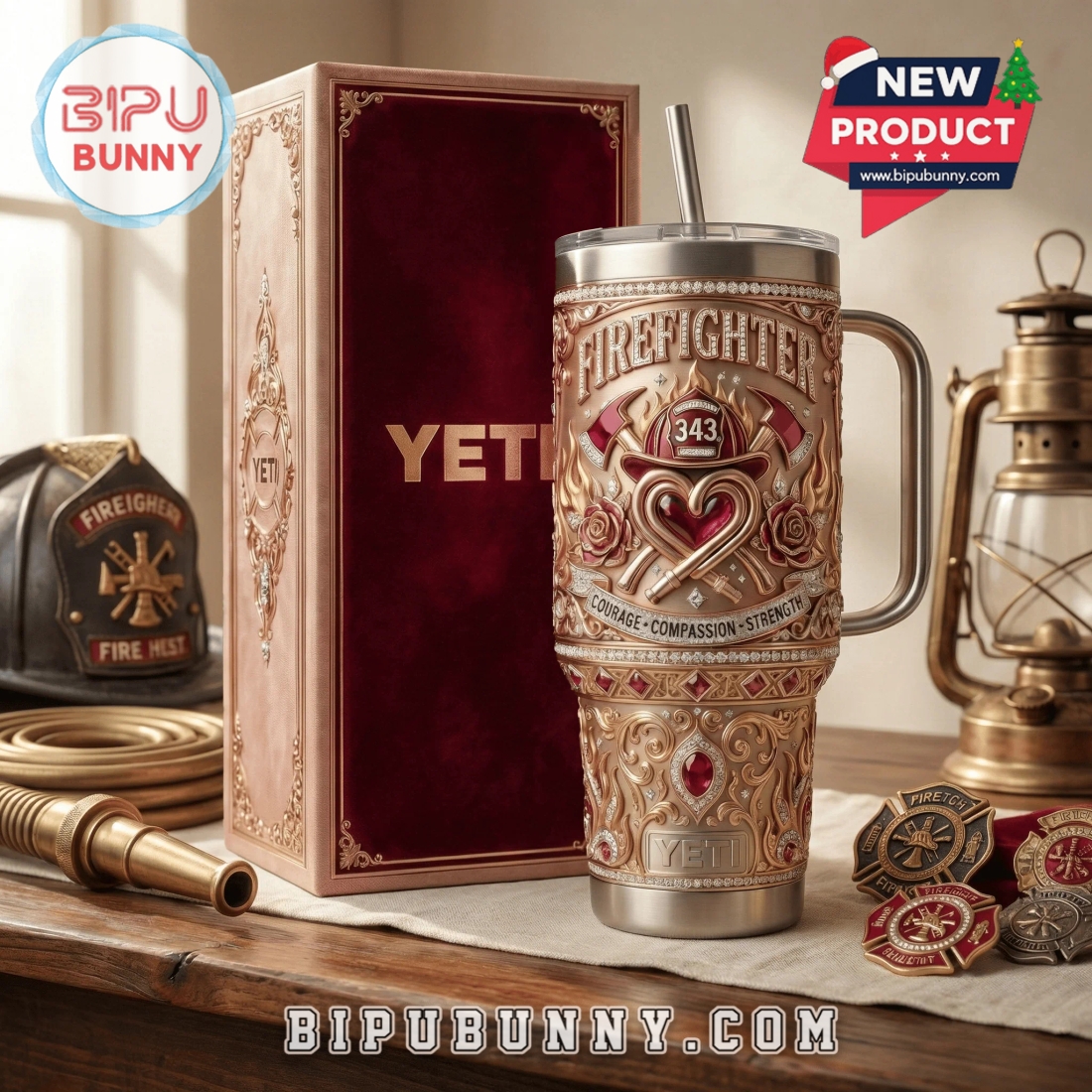 The Firefighter 343 YETI 40oz Tumbler With Handle stands as a monumental fusion of elite hydration technology and profound commemorative symbolism, meticulously engineered for those who demand uncompromising performance and wish to honor extraordinary heroism. This isn’t merely a vessel for liquids; it’s a statement of solidarity, resilience, and remembrance, built upon the legendary foundation of YETI’s robust design principles. At its core is YETI’s renowned double-wall vacuum insulation, a cornerstone feature that ensures beverages maintain their desired temperature for hours on end, whether it’s scorching hot coffee on a chilly morning shift or ice-cold water enduring an intense summer day. Constructed from kitchen-grade 18/8 stainless steel, it boasts an impressive resistance to punctures and rust, making it an ideal companion for the rugged demands of a firehouse, a demanding workday, or any outdoor adventure. The No Sweat™ Design prevents condensation from forming on the exterior, keeping hands dry and surfaces free from moisture rings, a practical advantage often overlooked but deeply appreciated during busy moments.