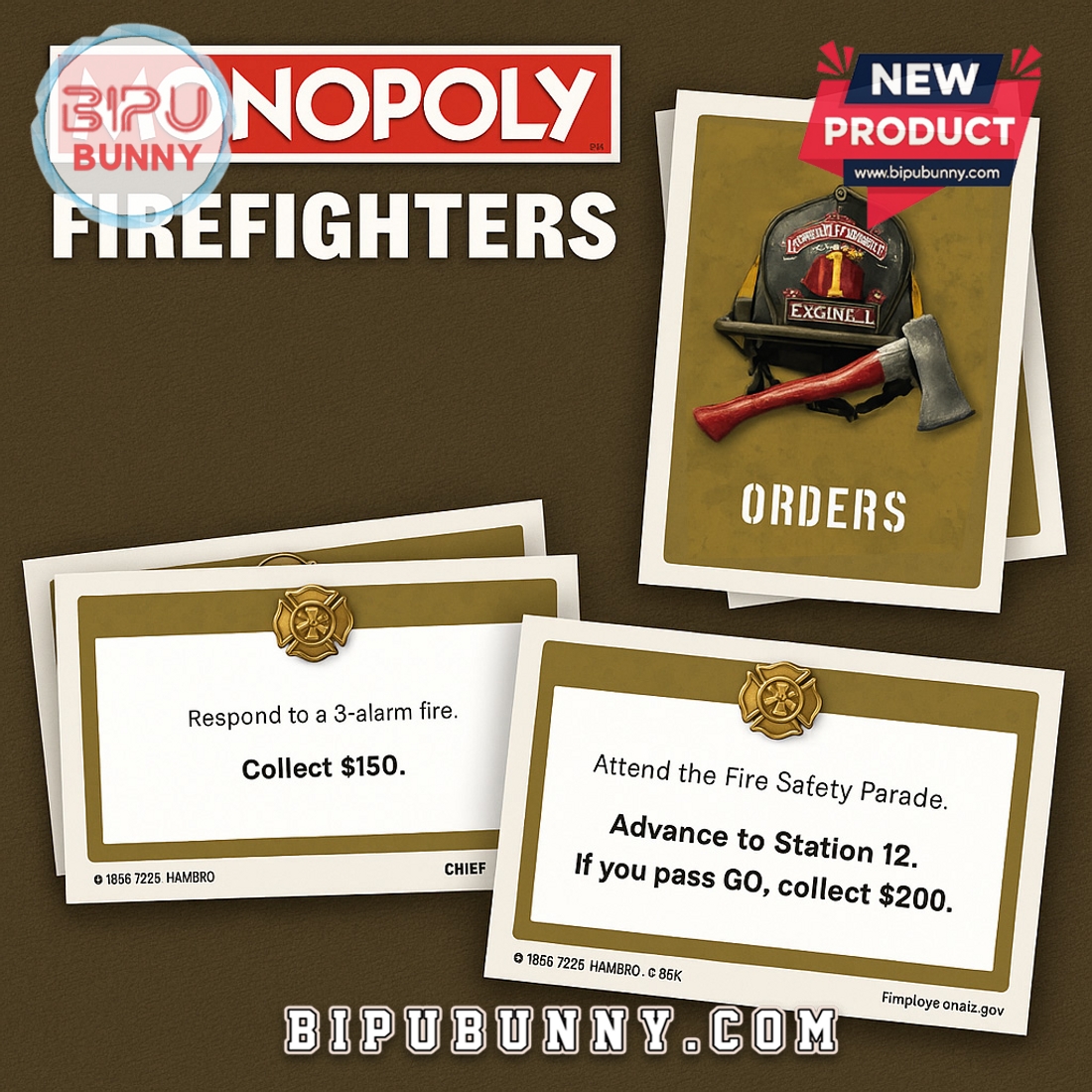 Don’t miss your chance to own a piece of firefighting history! Order your Firefighters Monopoly Board Game today and bring this inspiring tribute home. For more information and to keep up with special offers, visit the Bipu Bunny website!
