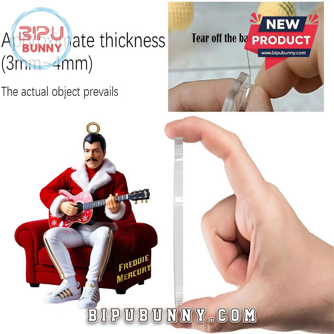 Inside are 24 unique ornaments and mini figures, each hidden behind its own numbered window. The figures are made from 3–4mm thick acrylic, offering both clarity and durability. Every charm includes a gold loop for easy hanging, and they come protected with a thin peel-off film. Styles range from chibi cartoon Freddies to more realistic figurines, all wearing various outfits—from famous concert costumes to winter sweaters, Santa hats, and even royal crowns. Some are holding microphones, guitars, or seated at a piano. Others recreate legendary stage moments with bold stances and high energy. Each piece is full of character, making the countdown to Christmas feel like a mini encore performance every day.