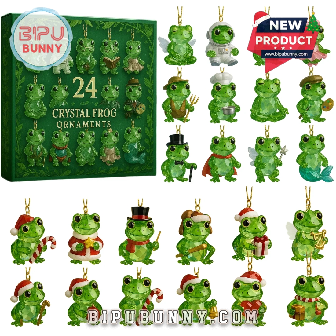 Say hello to the most charming countdown of the season – the Frog Advent Calendar 2025! Inside this deep green, gift-ready box, you’ll find 24 miniature frog ornaments, each made from vibrant green crystal with brilliant faceted detailing that sparkles under light. These adorable frogs come in a variety of themed outfits – from a Santa frog holding a candy cane to a space explorer in a full astronaut suit. Each one hangs from a delicate gold loop and is neatly placed in its own compartment within the sturdy calendar box.