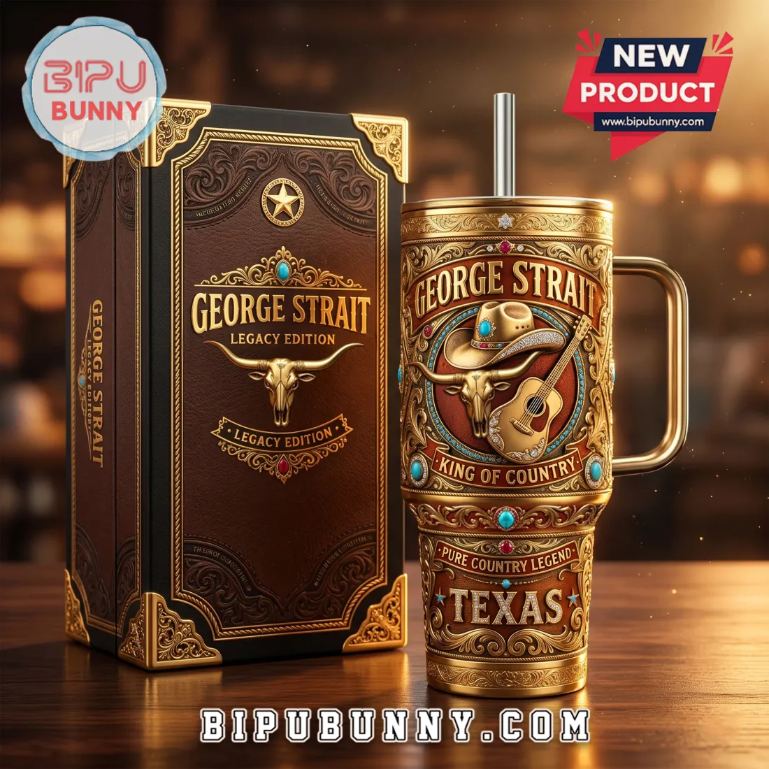 - Striking Details: The rich, embossed details featuring George Strait, the iconic bull skull, and guitar, all accented with vibrant turquoise, demand a second look. Its regal design truly sets it apart from anything else.