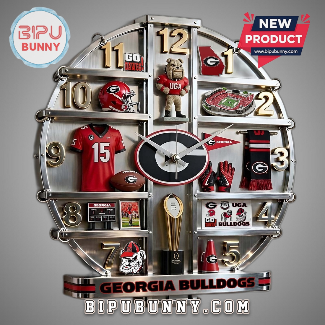 This decorative wall clock perfectly meets the needs of a diverse range of Georgia Bulldogs enthusiasts. For the die-hard fan, it’s an unequivocal declaration of loyalty, a constant reminder of thrilling Saturdays “between the hedges” and the pride of being part of the Bulldog Nation. It provides a unique opportunity to integrate team spirit into daily life, transforming a mundane necessity like checking the time into a moment of fan connection. For those seeking unique gift ideas, this clock stands out as a thoughtful and distinctive present for birthdays, holidays, graduations, or housewarming celebrations for any Bulldogs supporter. It’s more than just a gift; it’s an experience, bringing a piece of game day excitement right into their home. Ultimately, this product combines aesthetic sophistication with practical utility, offering a durable, eye-catching, and emotionally resonant piece of decor that every Georgia Bulldogs fan will cherish, continually reinforcing their passion for their cherished team.