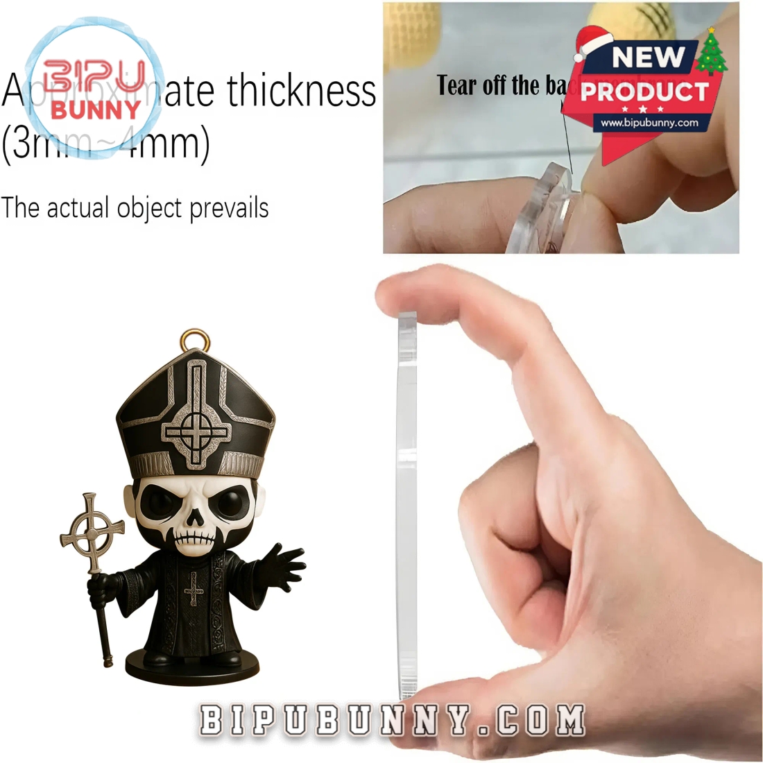 Inside are 24 themed surprises, each one tucked into a numbered compartment for a dramatic daily reveal. You’ll find mini figures of Papa Emeritus in multiple robes, Nameless Ghouls, band-themed accessories, and holiday ornaments like guitars, stained glass windows, stars, and stockings bearing the band’s insignia. Each piece is made of thick 3mm–4mm acrylic or lightweight resin, making them durable yet easy to hang or display. Small touches like glittery finishes, metallic paint, and built-in hooks make these collectibles both practical and visually striking. The box itself closes securely with a magnetic flap, keeping your figures organized for storage or reuse.