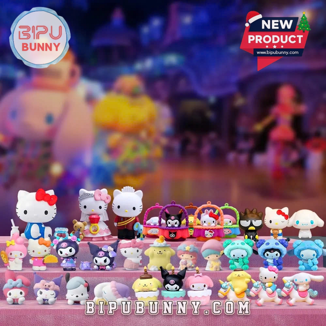 - 24 unique mini figures and ornaments featuring Hello Kitty, Cinnamoroll, and their friends.