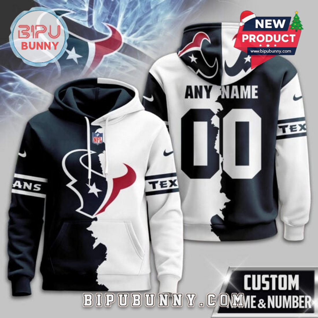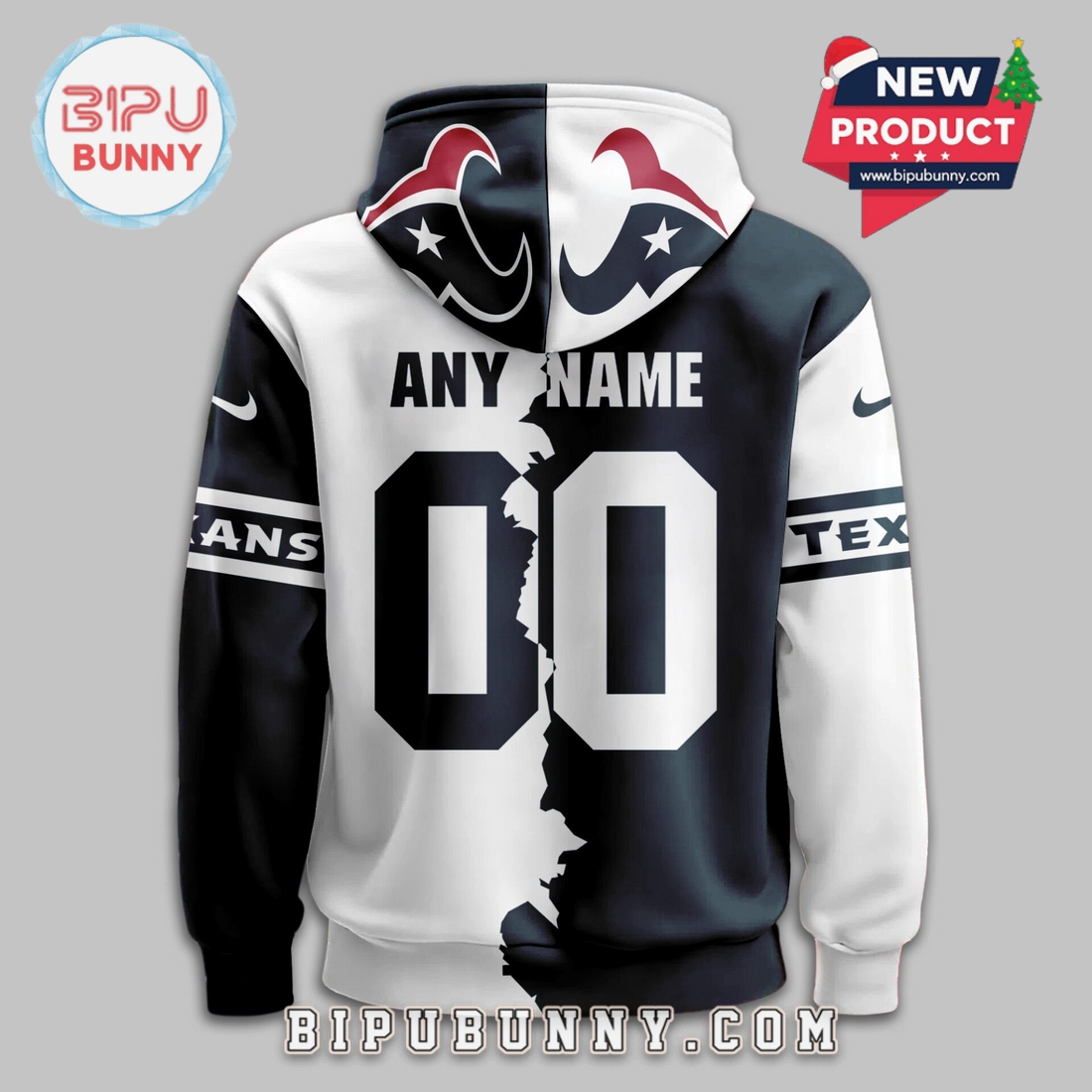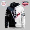 At the heart of its unique appeal is the innovative “Victory Split” design. This striking visual concept ingeniously divides the hoodie’s front and back panels with a dynamic contrast, typically showcasing the Texans’ iconic Deep Steel Blue on one side and a vibrant Battle Red or Liberty White on the other. This isn’t a simple color block; the split is often artfully integrated through a diagonal seam or a cleverly placed graphic that visually bifurcates the garment, creating a powerful, modern aesthetic. The left chest proudly features the iconic Houston Texans bull logo, meticulously embroidered or rendered in high-quality tackle twill for a tactile, premium finish that stands out. On the opposite side, or subtly integrated into the contrasting panel, the “2025 Victory” inscription is elegantly presented, serving as a constant reminder of the team’s aspirational goals and the fan’s shared journey toward them. This forward-looking detail distinguishes it from standard fan gear, transforming it into a commemorative item even before the season begins.