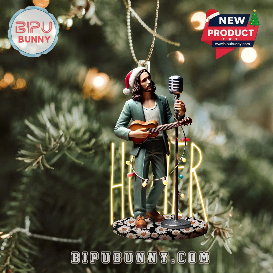 Each of the 24 compartments holds a miniature Hozier-themed ornament, ranging from playful to poetic. The materials vary from glossy acrylic to hand-painted resin, offering both lightweight and durable pieces. You’ll find designs like “Reindeer Cozy”, a warm-sweater version of Hozier holding a cup of cocoa, or “Workshop Elf”, complete with ribbon and scissors. Others show him performing with guitar in hand, surrounded by gifts or Christmas lights. There’s even a version of Hozier riding a sparkling reindeer in a glittery green jacket! Every piece includes a secure hanging loop, and some models feature intricate bases like snowy ground or flower patterns. These small touches make the set feel not just festive, but deeply personal—like a holiday concert unfolding day by day.