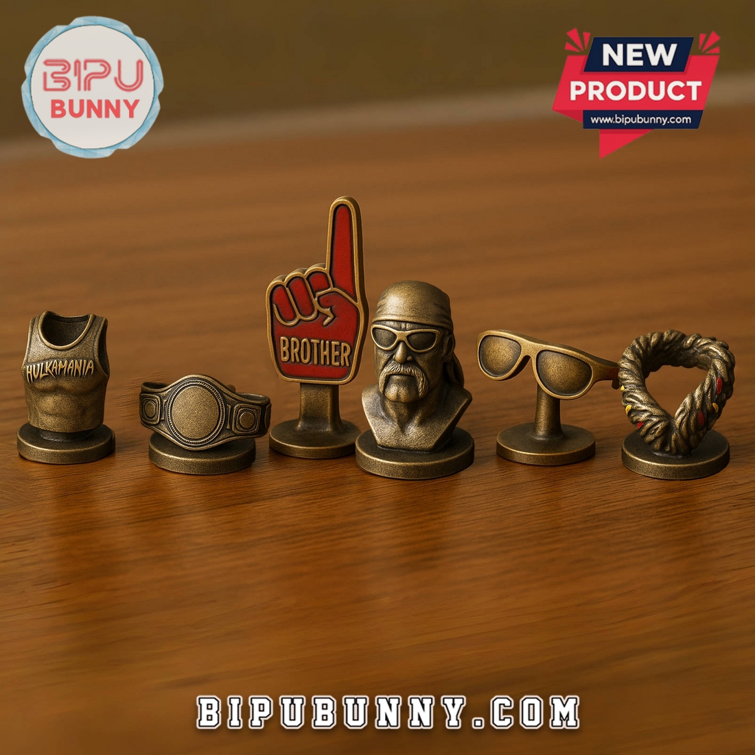 The game is built with high-quality, durable materials, ensuring it can withstand years of intense matches with friends and family! The board is filled with intricate details, from the custom “Brother Bucks” play money, featuring Hulk’s face on every bill, to the unique property squares named after his most famous moves and catchphrases, like “Hulkamania” and “Hulk Hogan’s Beach Bash”! Even the game tokens are a special touch! They are meticulously crafted from a gold-colored metal, with five custom-molded pieces representing different aspects of Hulk Hogan’s career—his “Hulkamania” tank top, the championship belt, the classic foam finger, his signature sunglasses, and his iconic bandana! Every piece is designed to transport you straight into the wrestling world, making every game an epic showdown!