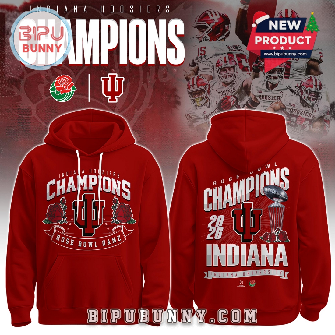 Shop the Indiana Hoosiers 2026 Rose Bowl Champions Red Hoodie And Pants bundle at Bipubunny and enjoy a better deal when you buy the full combo (Hoodie + Jogger + Cap). Don’t miss out on today’s offer!