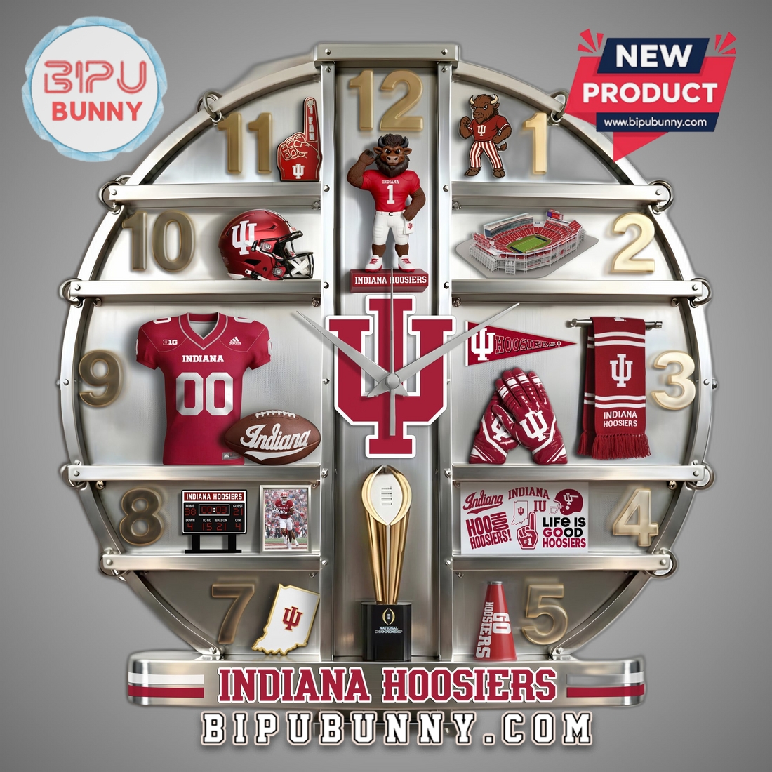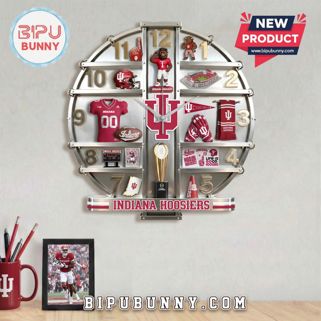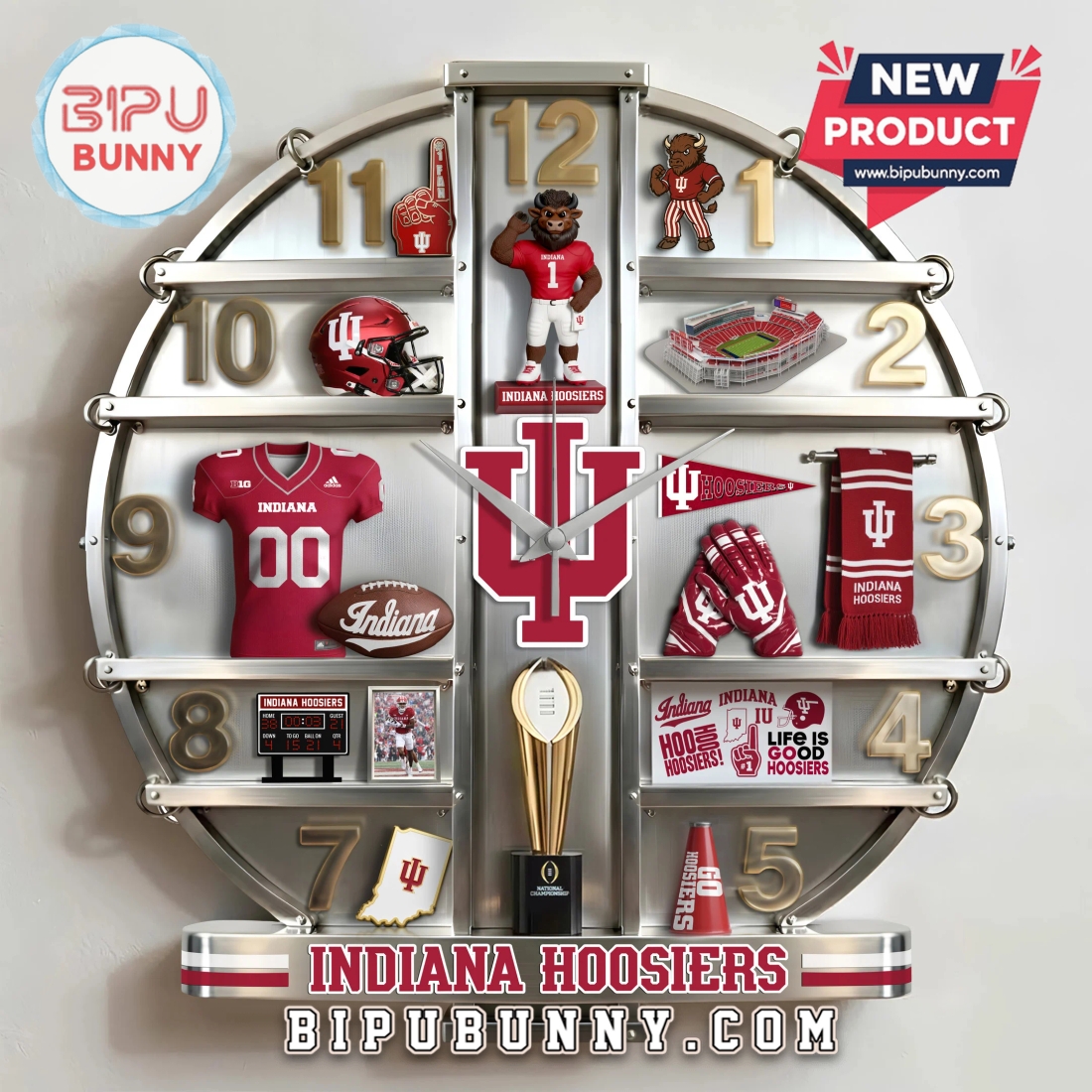 The advantages of this distinctive wall clock extend far beyond its core features. For the dedicated Hoosiers fan, it represents more than just a functional item; it’s a daily affirmation of loyalty, a subtle yet powerful statement of pride that enhances any personal space. It transforms a mundane wall into a vibrant tribute, suitable for a myriad of settings—from a dedicated man cave or game room to an office, dorm room, or even a living area where team spirit is embraced with understated elegance. As a decorative piece, its unique 3D design serves as an immediate conversation starter, drawing attention and admiration from guests and fellow fans alike. Furthermore, its substantial quality and unique presentation make it an exceptional gift. For alumni, current students, parents, or any passionate supporter, it offers a thoughtful and practical present for birthdays, holidays, graduations, or housewarmings, standing out from more common fan merchandise. It meets the needs of customers looking to infuse their environment with personalized flair, those seeking a durable and well-crafted item that reflects their passions, and gift-givers searching for a memorable piece that combines utility with profound symbolic value. Ultimately, this clock provides a lasting, sophisticated expression of Indiana Hoosiers pride, merging top-tier craftsmanship with essential functionality to create an indispensable addition to any fan’s collection.