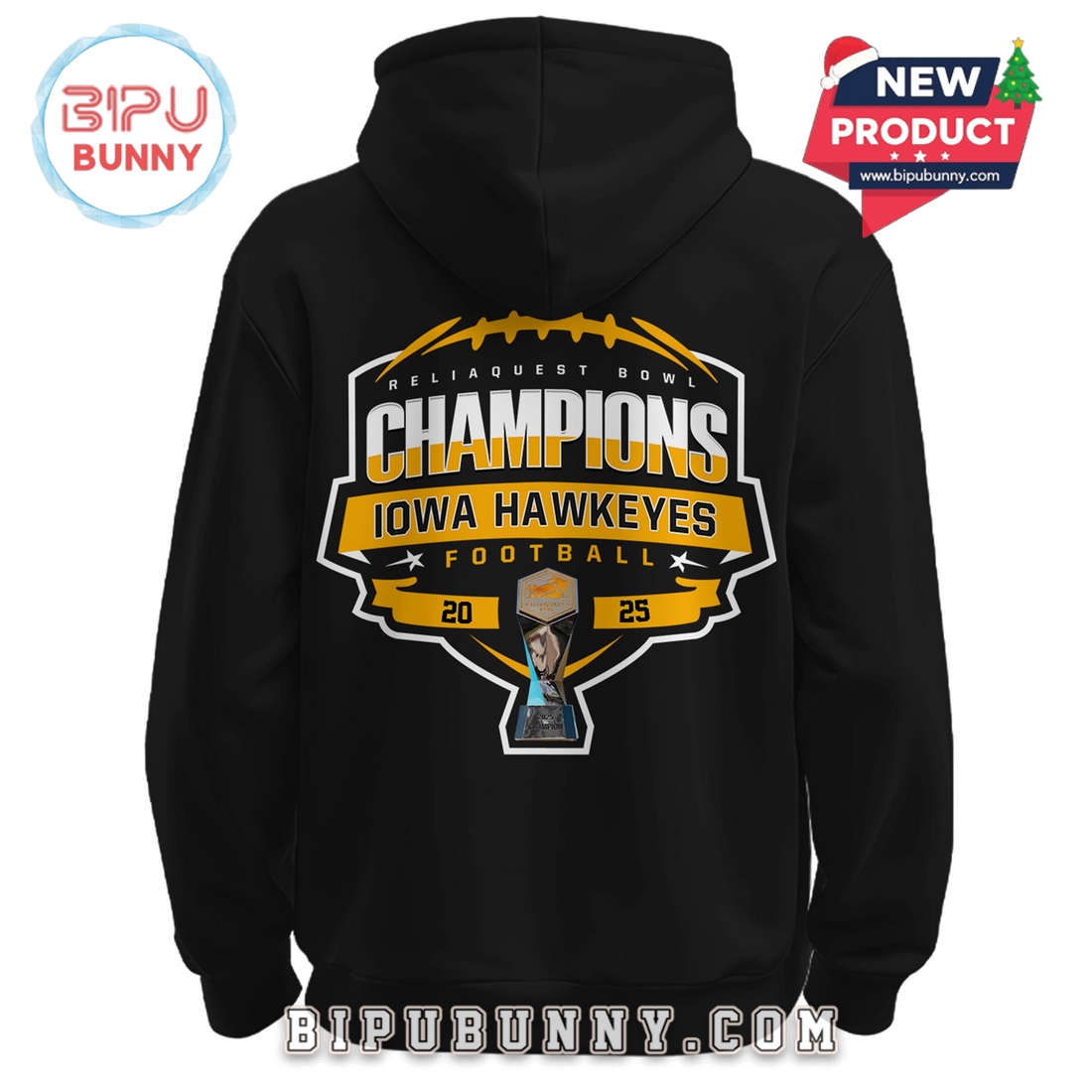 Shop the Iowa Hawkeyes ReliaQuest Bowl Champions Hoodie And Pants bundle at Bipubunny and enjoy a better deal when you buy the full combo (Hoodie + Jogger + Cap). Don’t miss out on today’s offer!