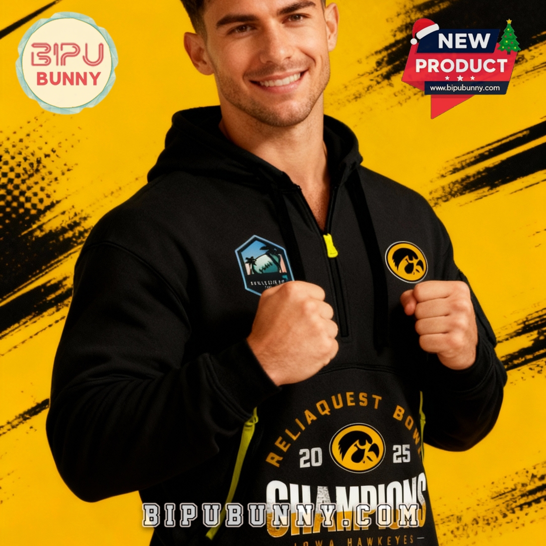 Don’t miss out on the Iowa Hawkeyes ReliaQuest Bowl Champions Quarter-Zip Hoodie! This is your chance to show off your Iowa pride and stay comfortable while doing so. Whether you’re heading to a game, hanging out with friends, or simply relaxing at home, this hoodie is perfect for any occasion. Order yours today and take part in celebrating the incredible victory of the Iowa Hawkeyes! Keep an eye out for limited-time offers and promotions to grab this exclusive fan gear at a great price!